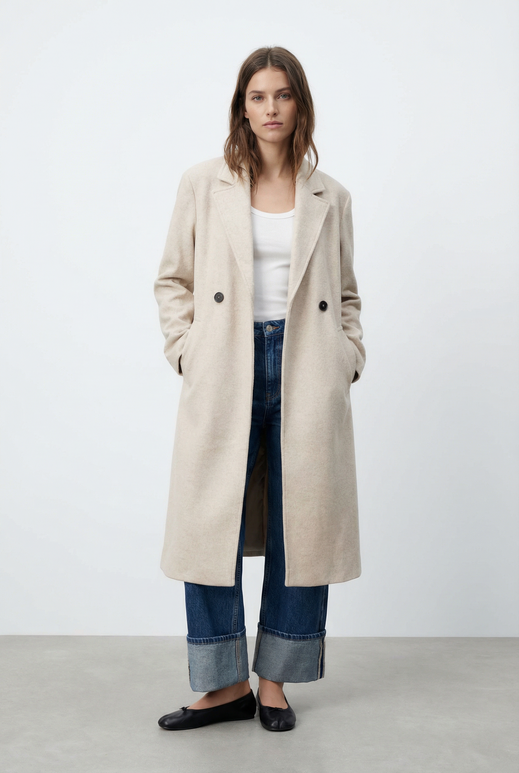 Manteau long beige élégant