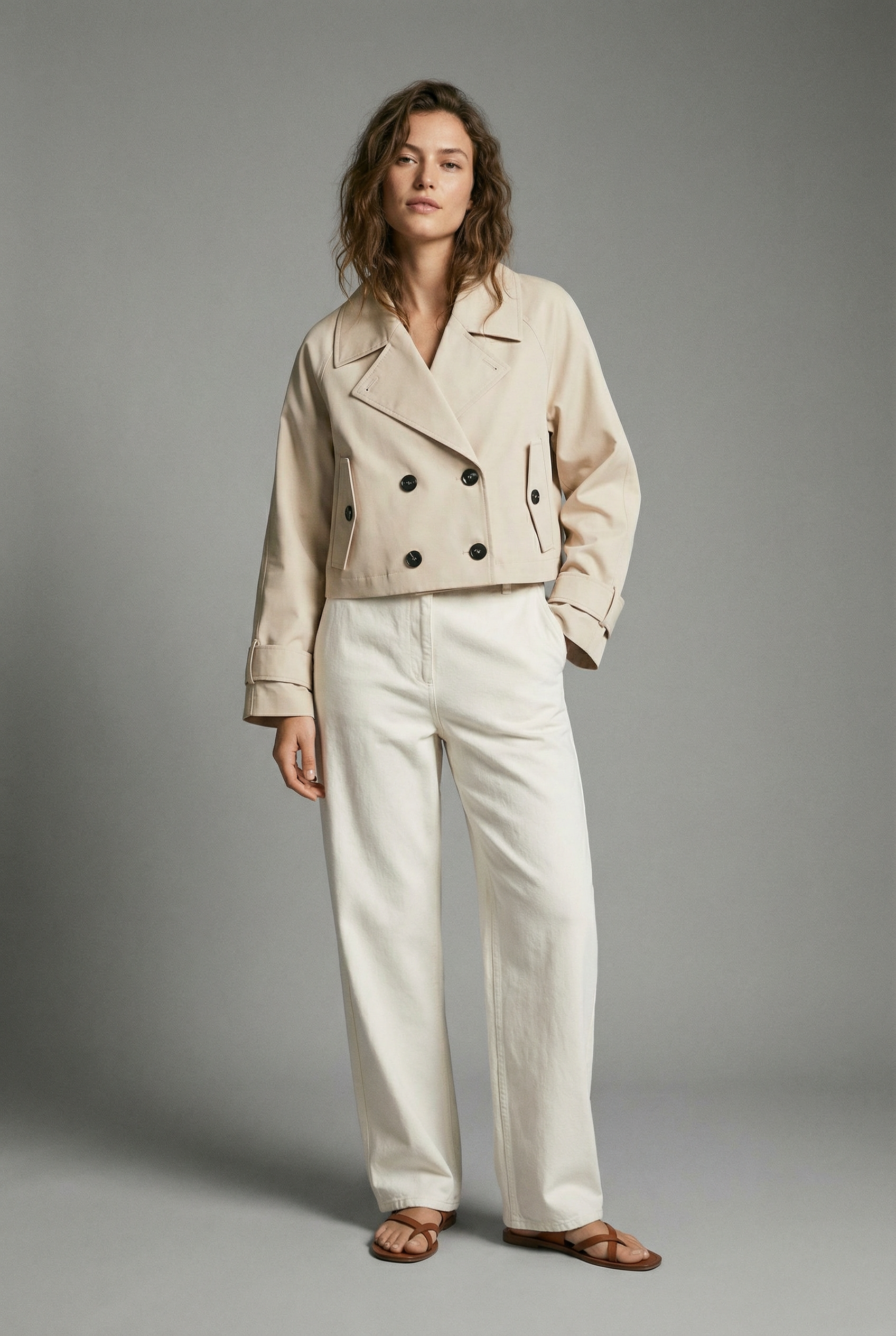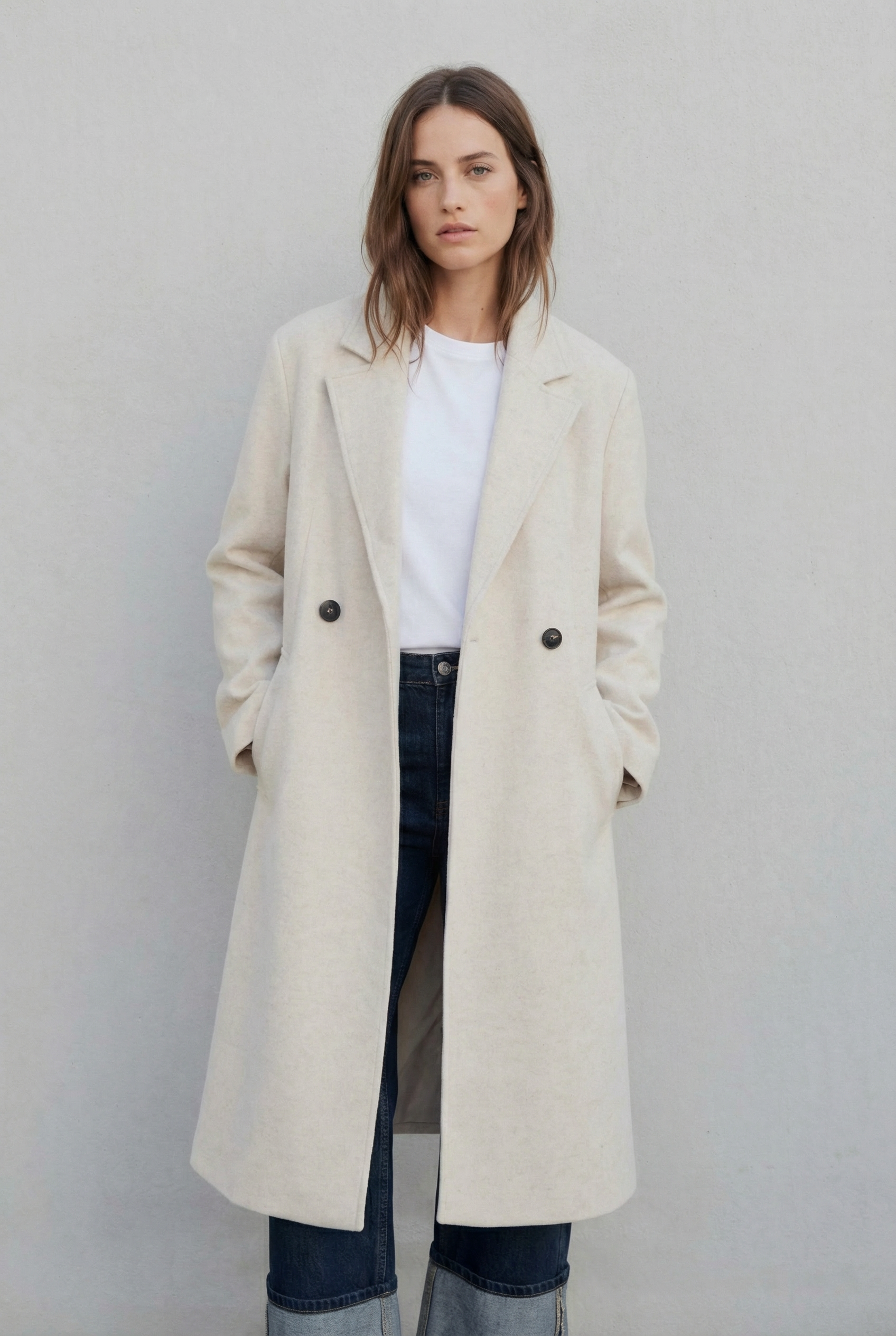Manteau long beige clair croisé