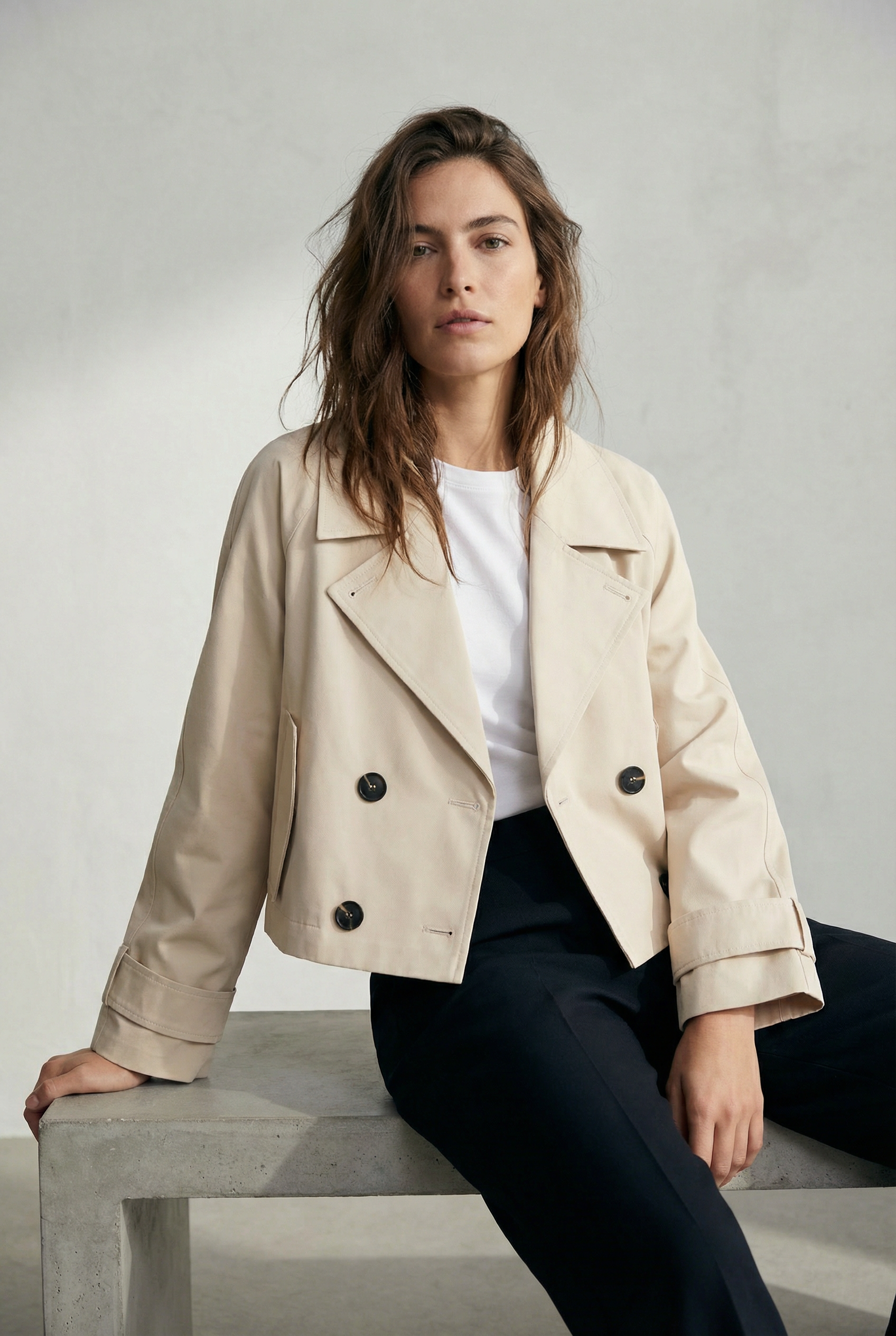 Manteau croisé femme élégant – Coupe droite ceinturée