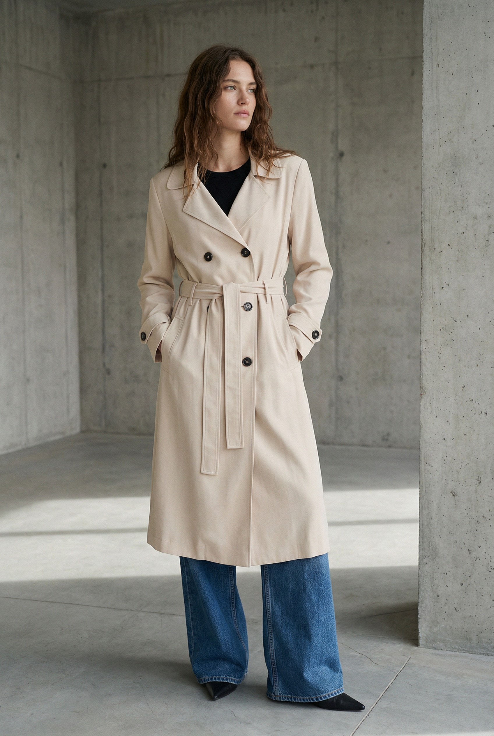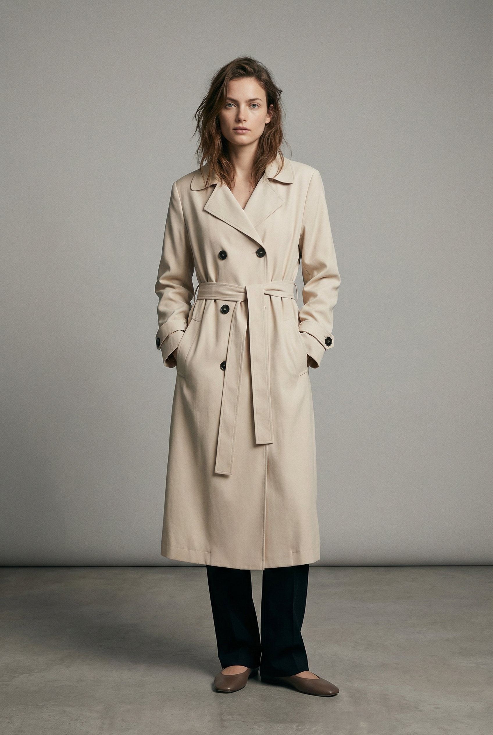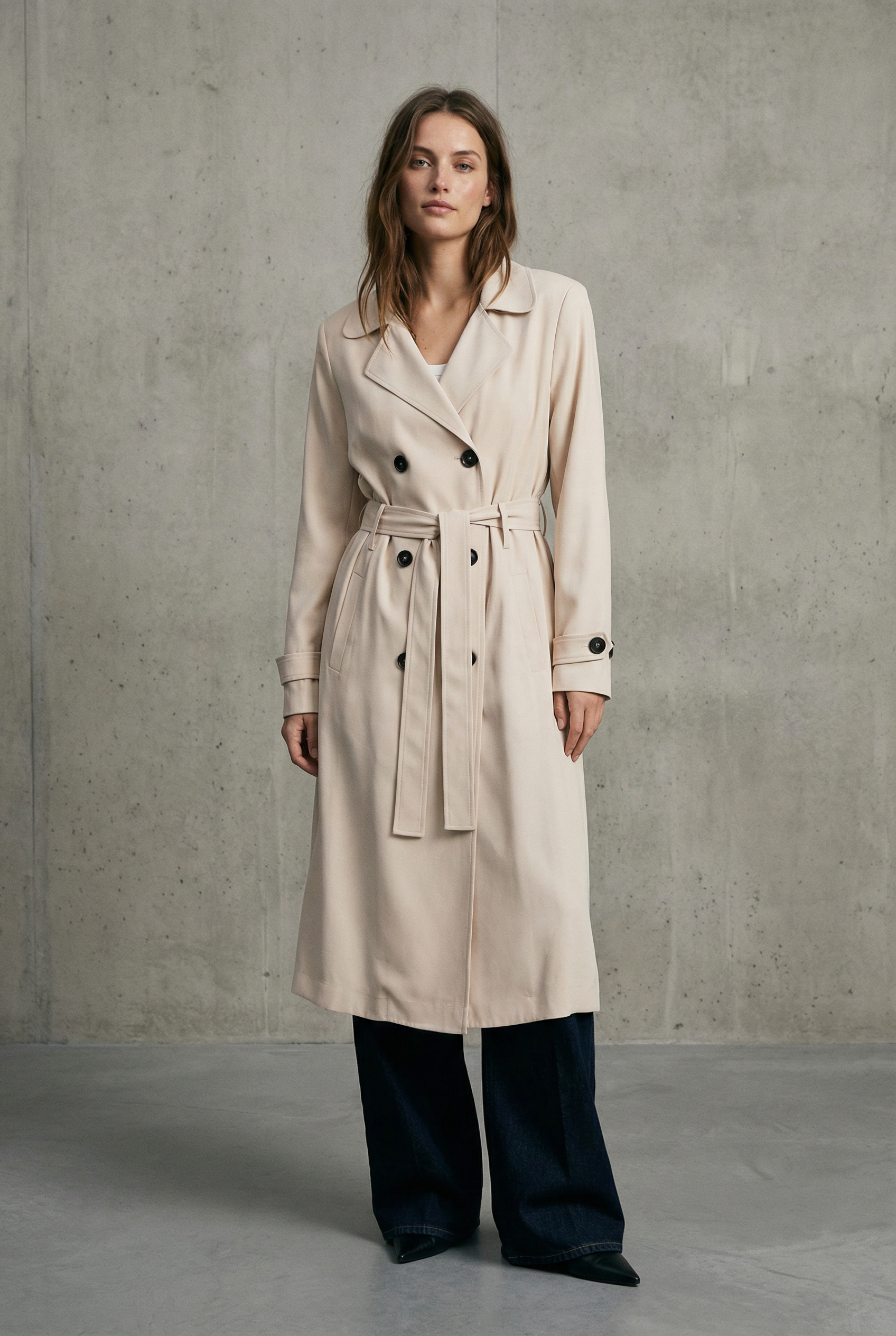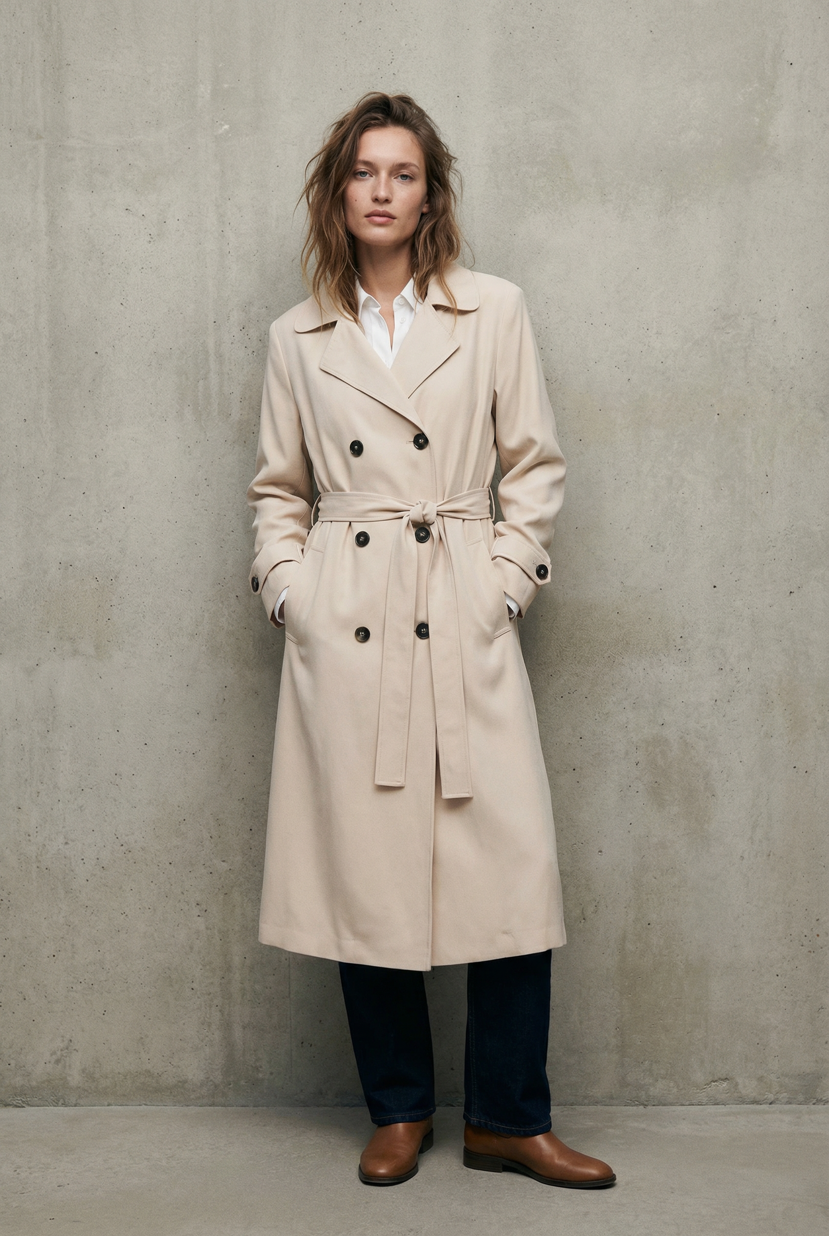 Trench long beige fluide