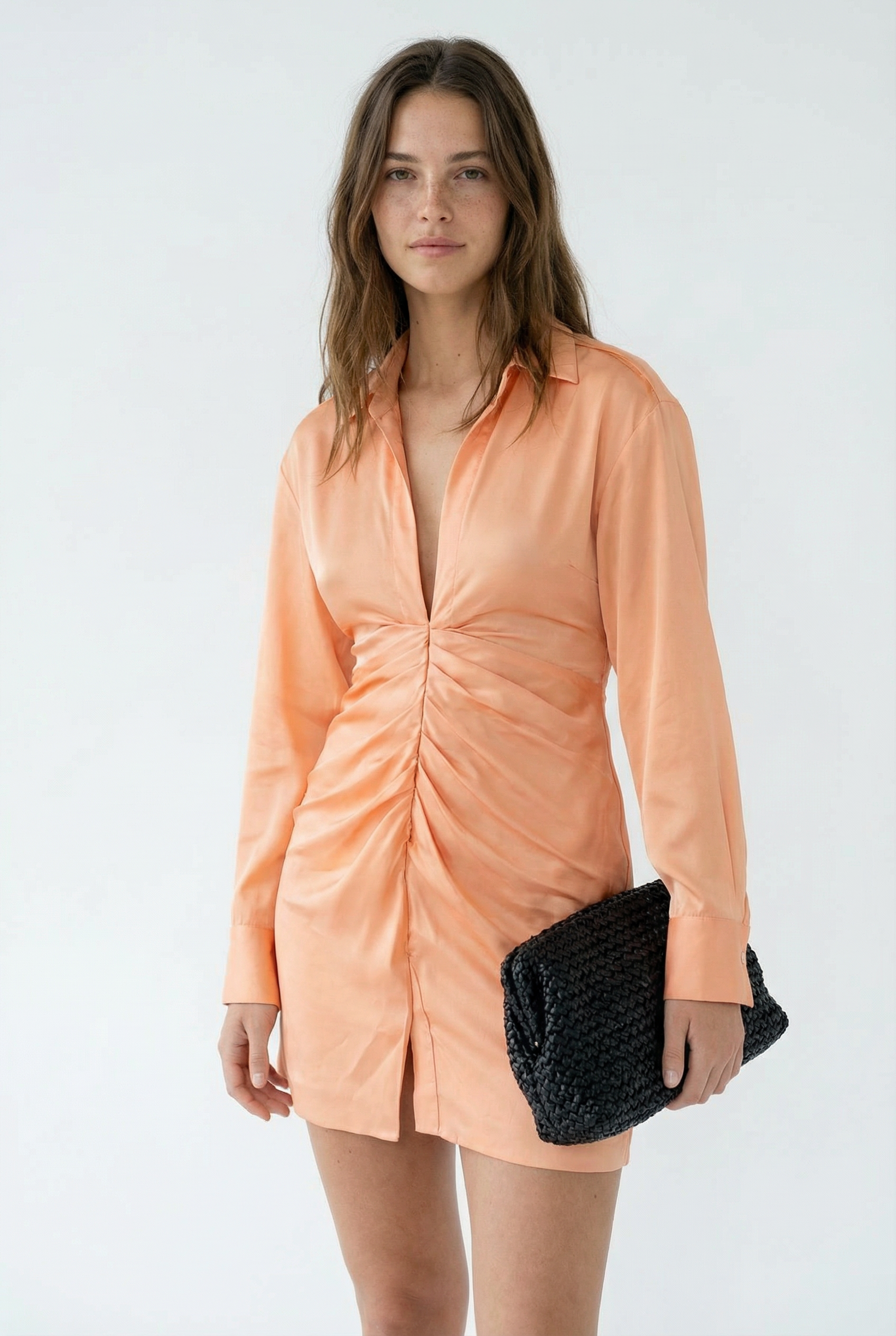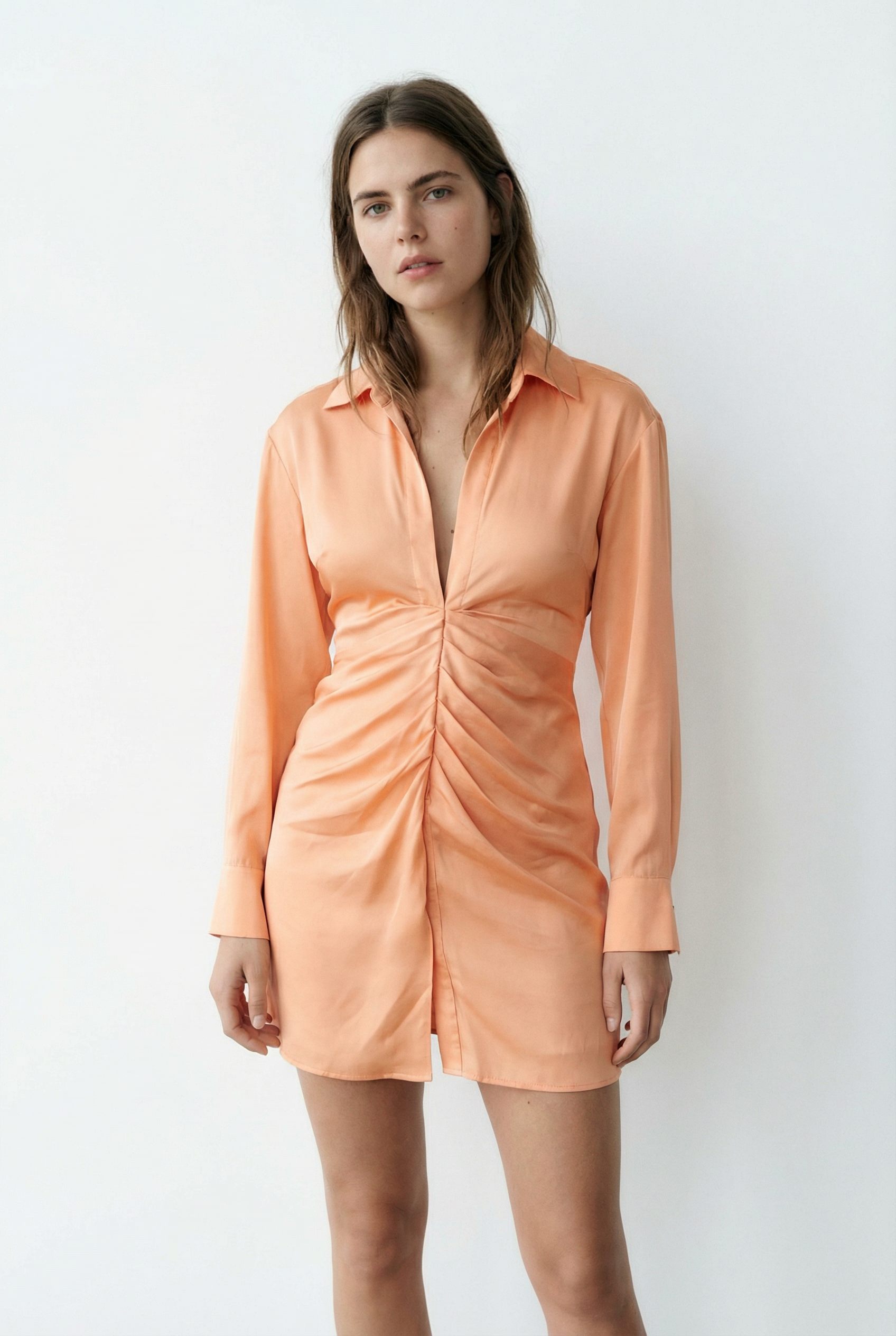 Mini robe satinée de soirée orange pêche