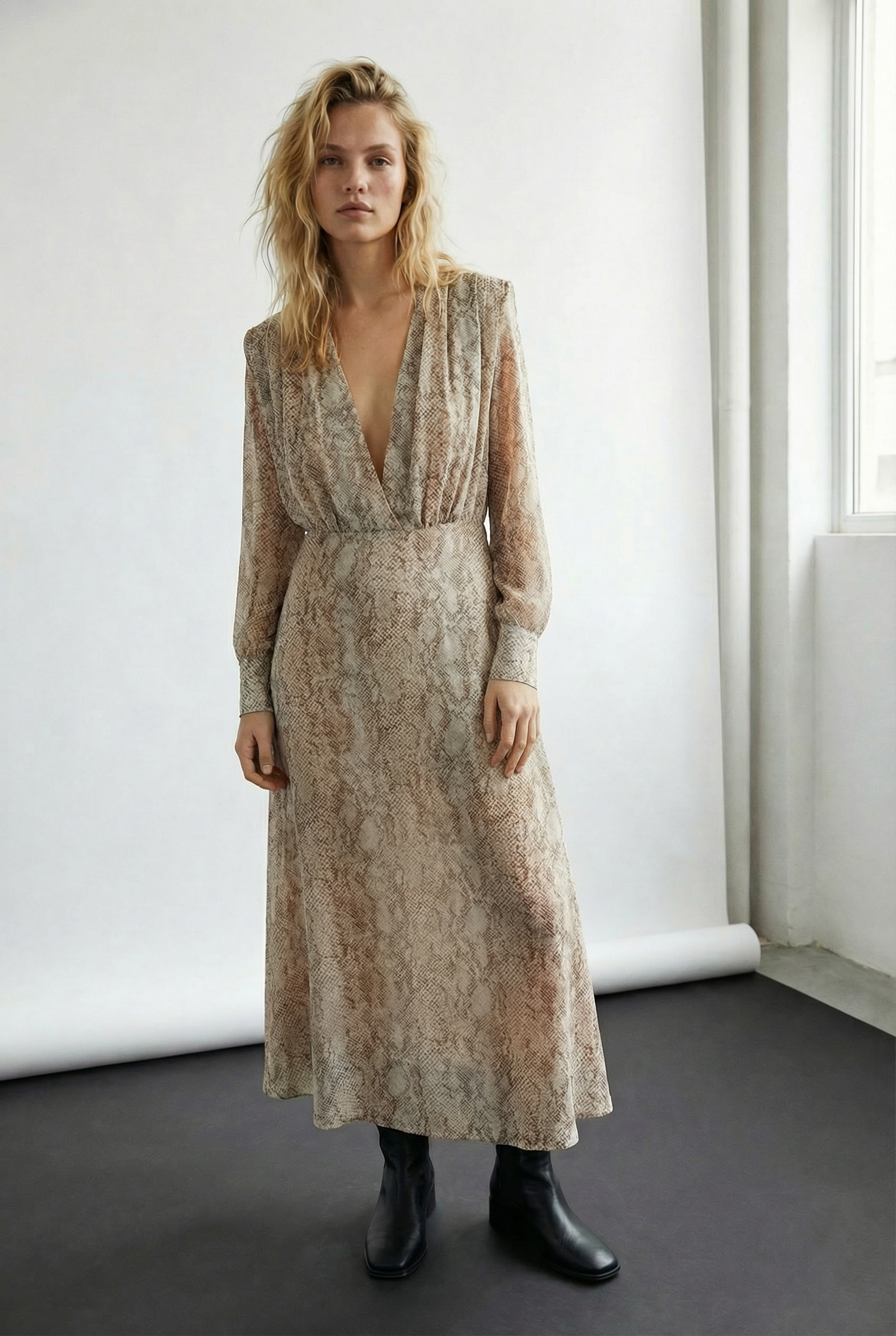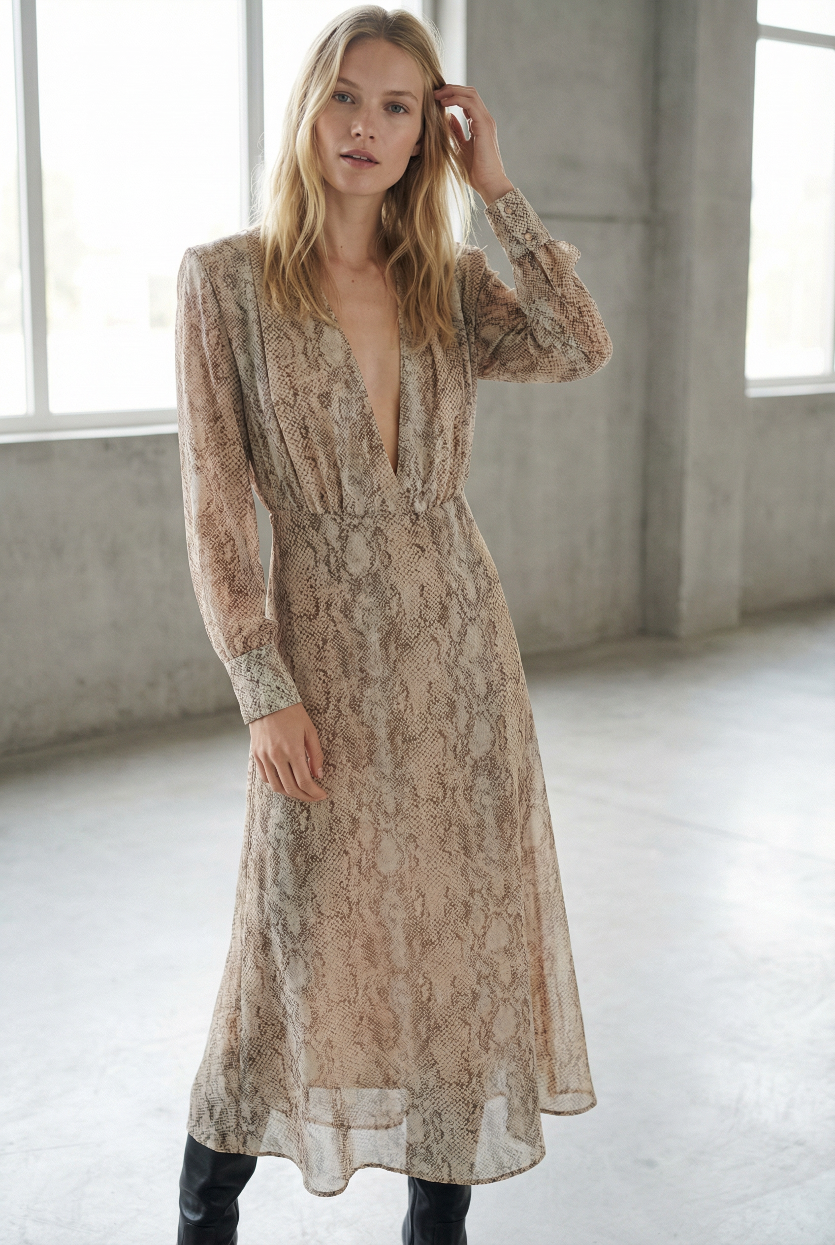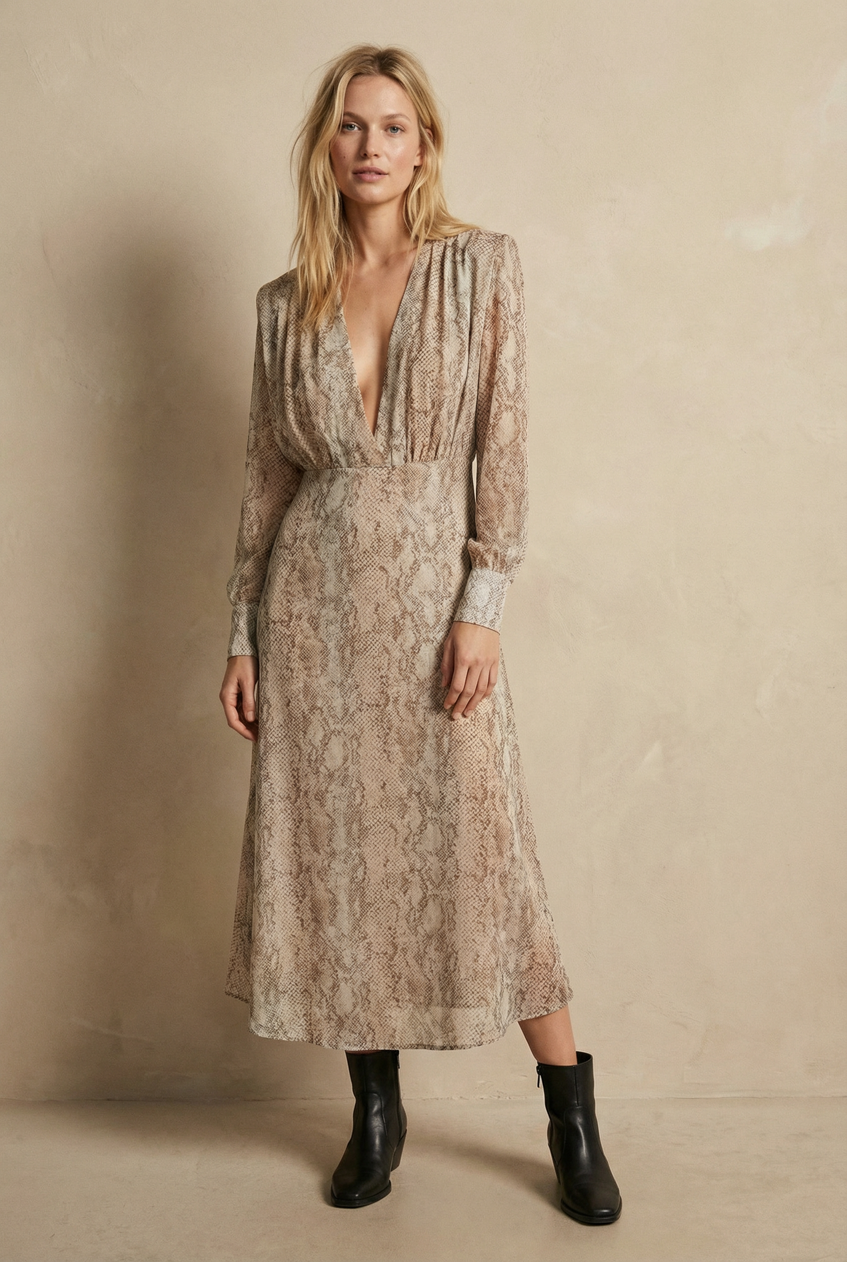 Robe Imprimé Animal Python Manches Longues