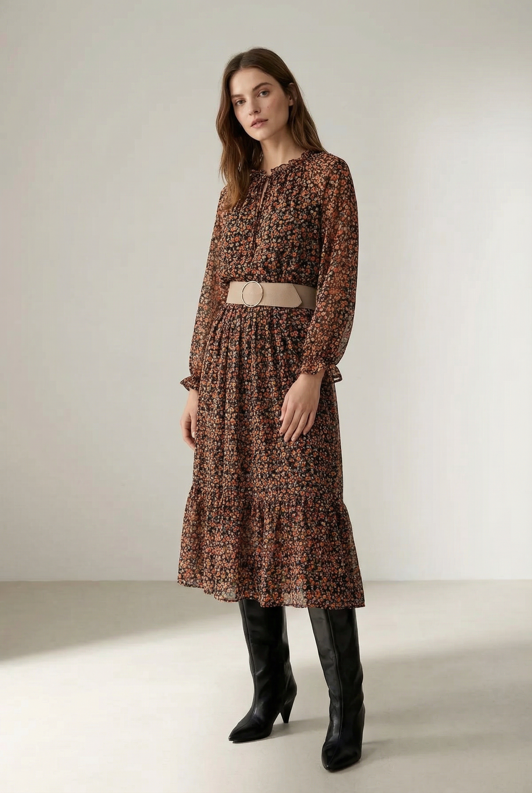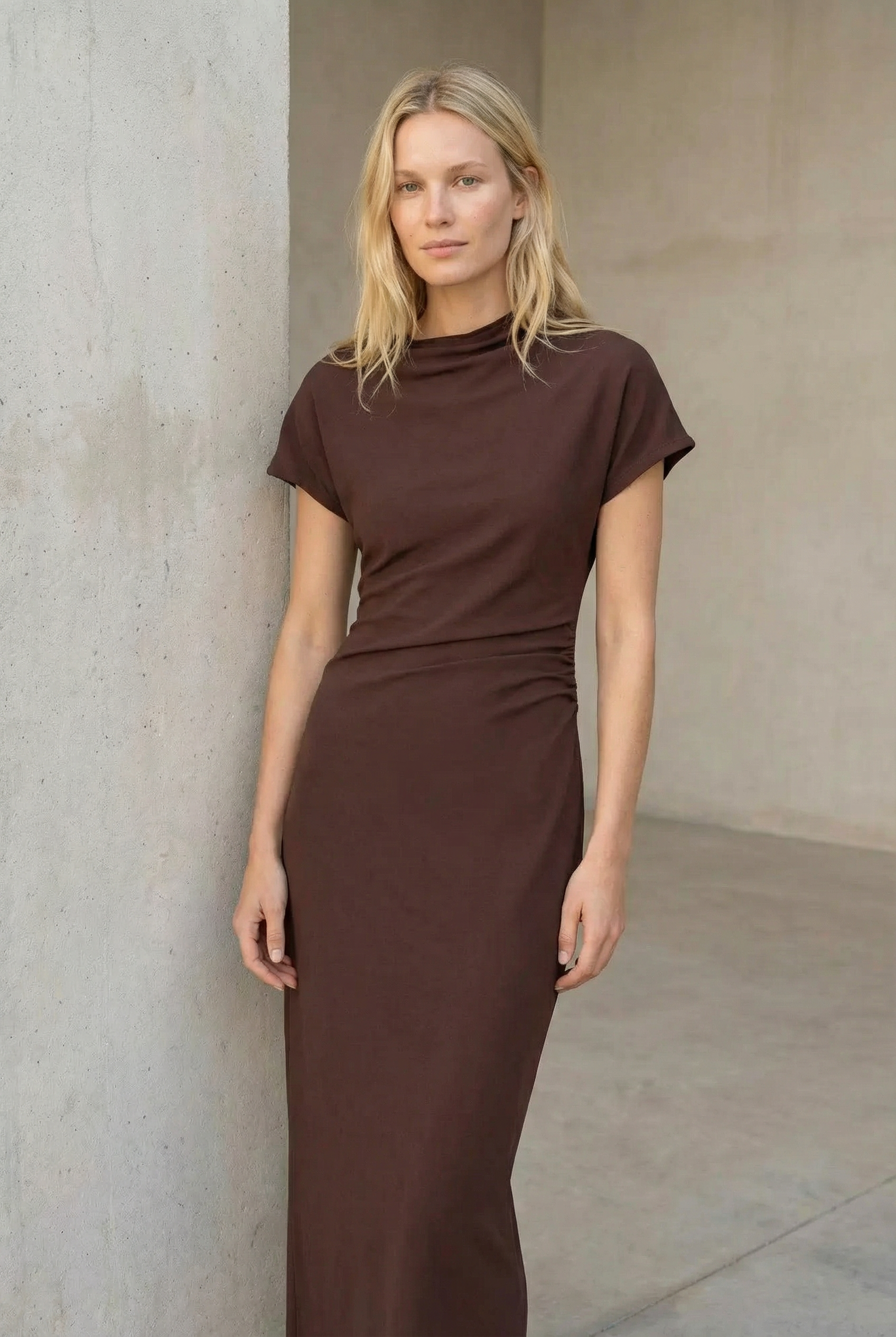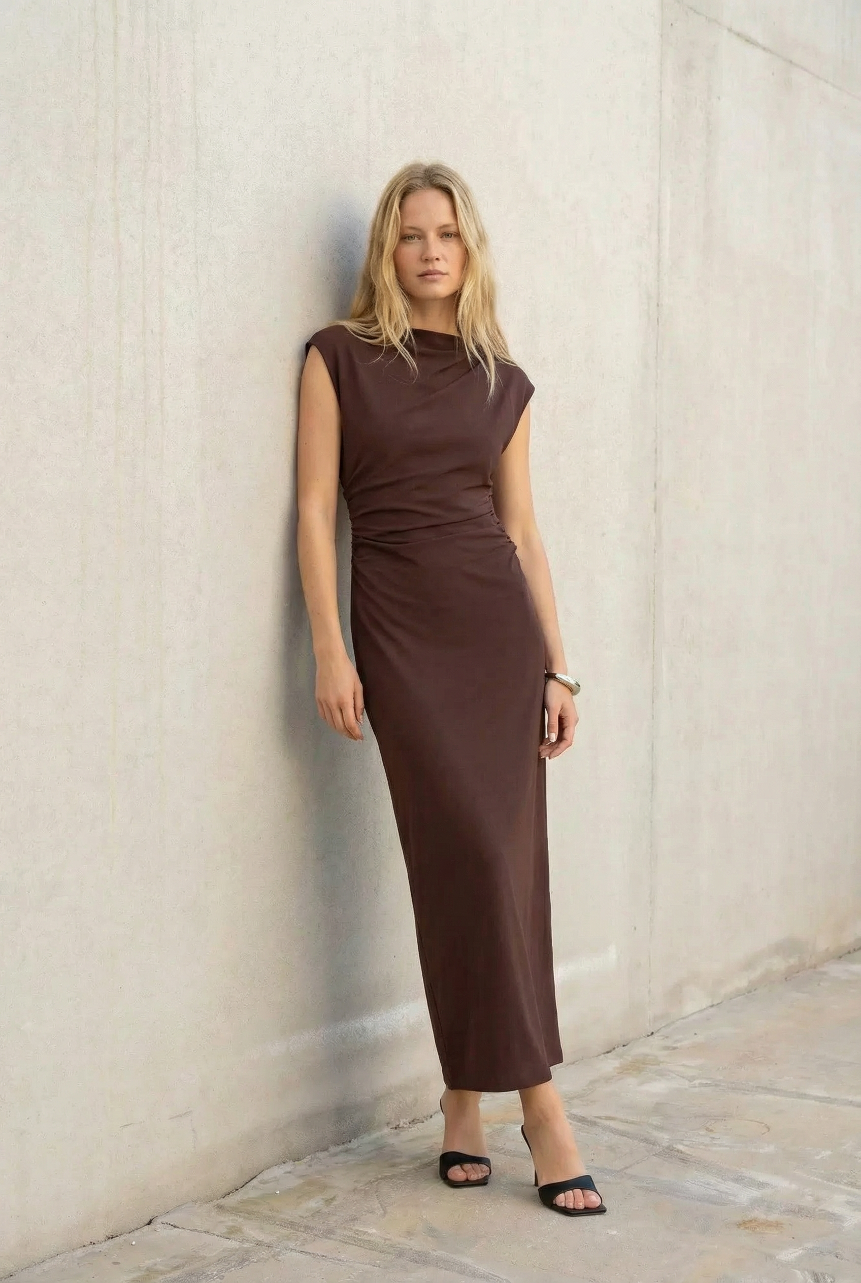 Robe Longue Marron Avec Détails Drapés