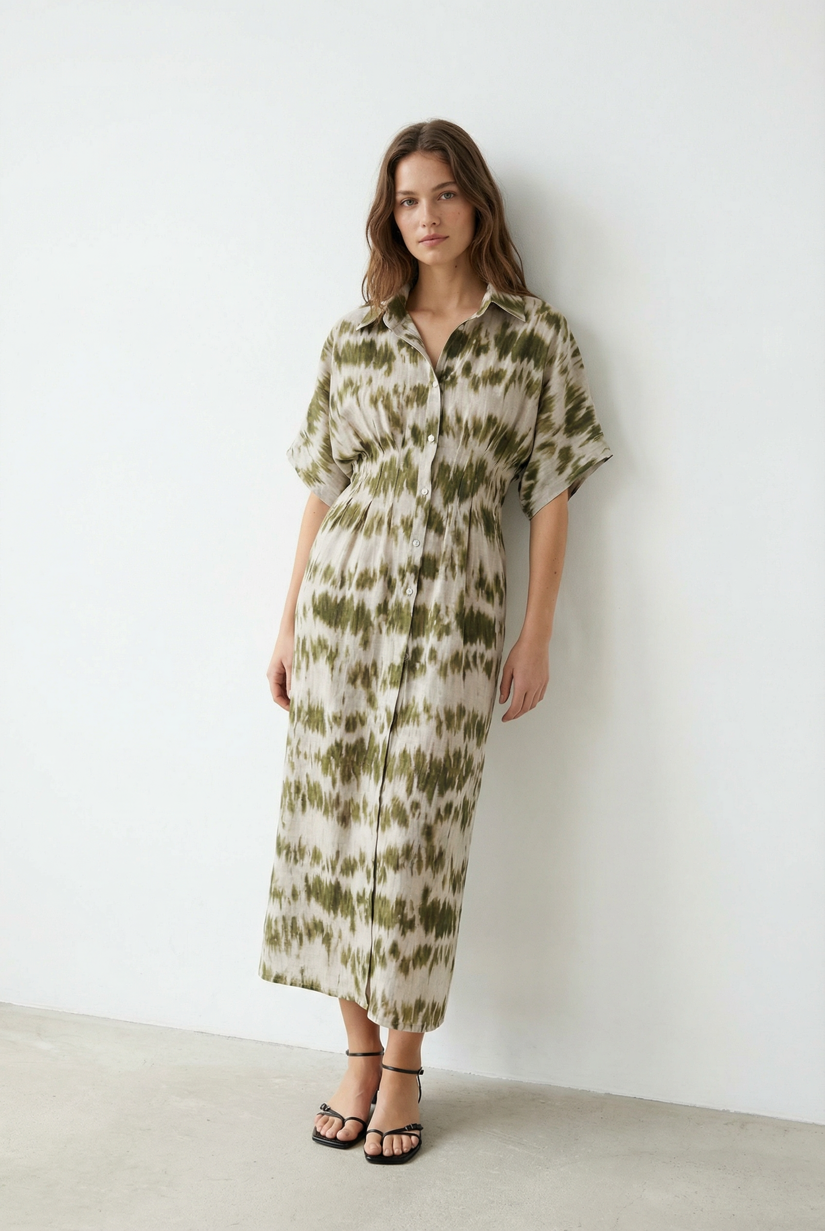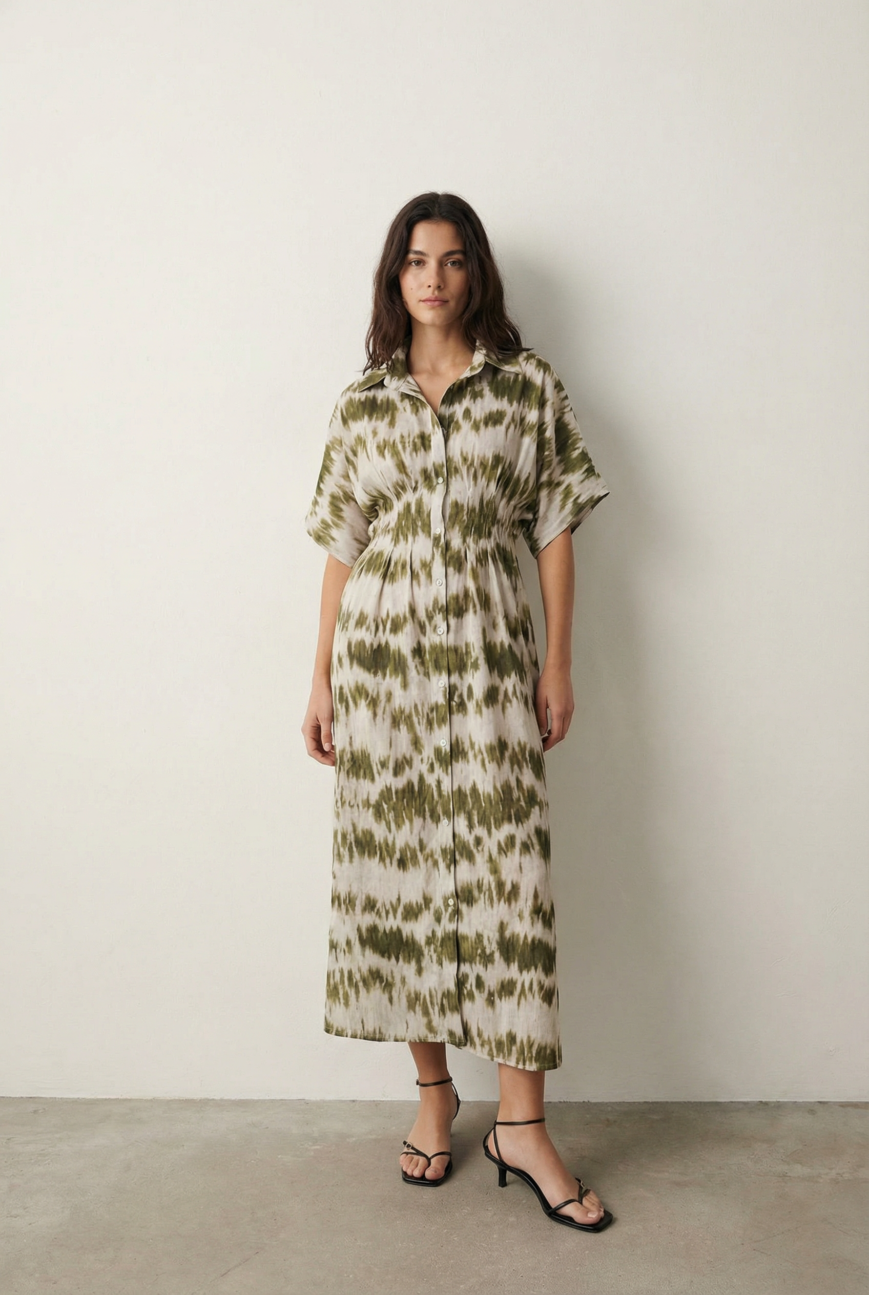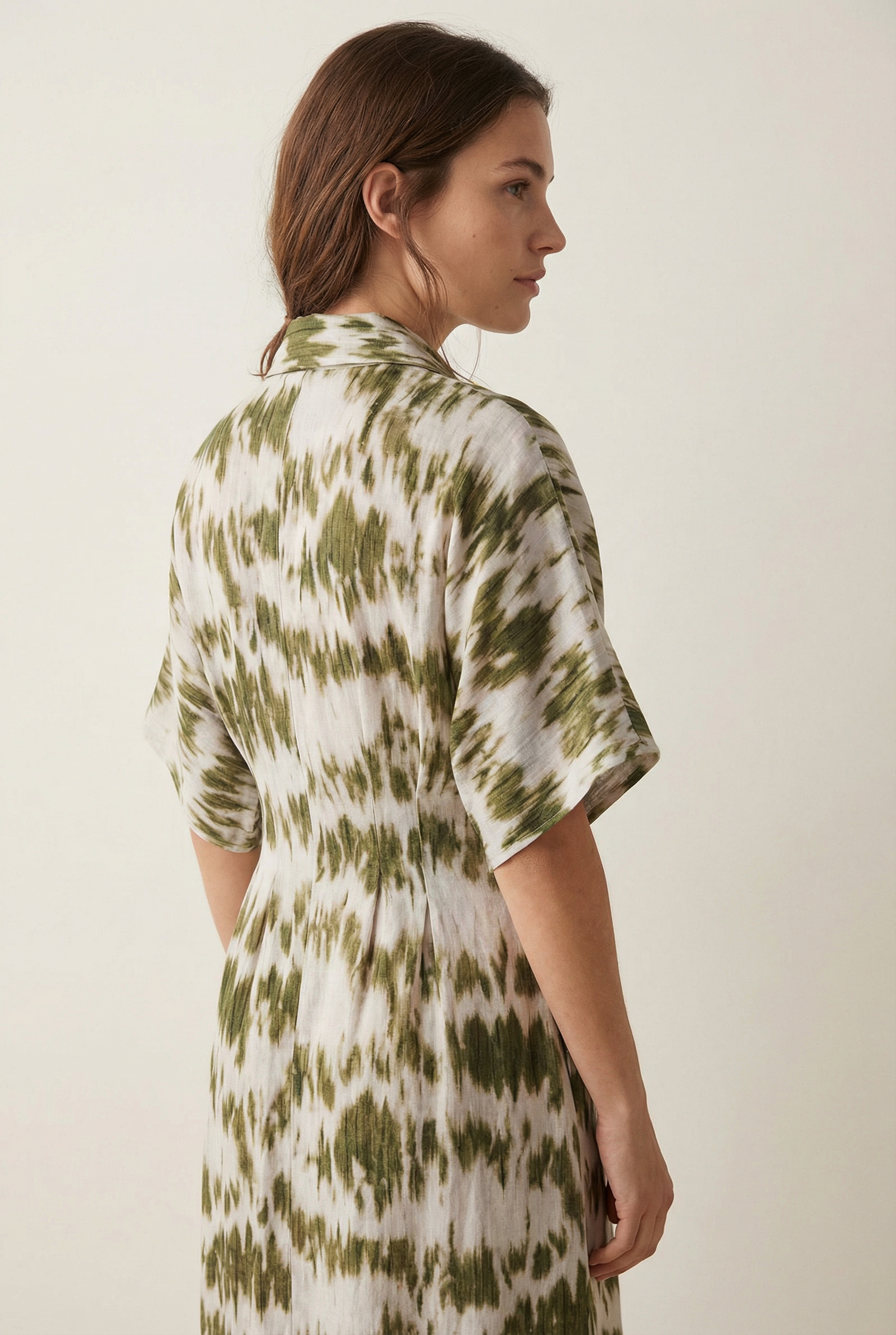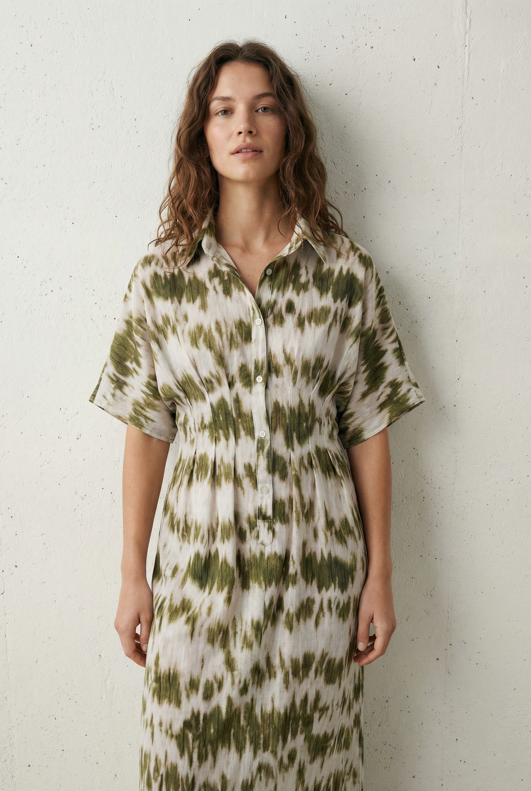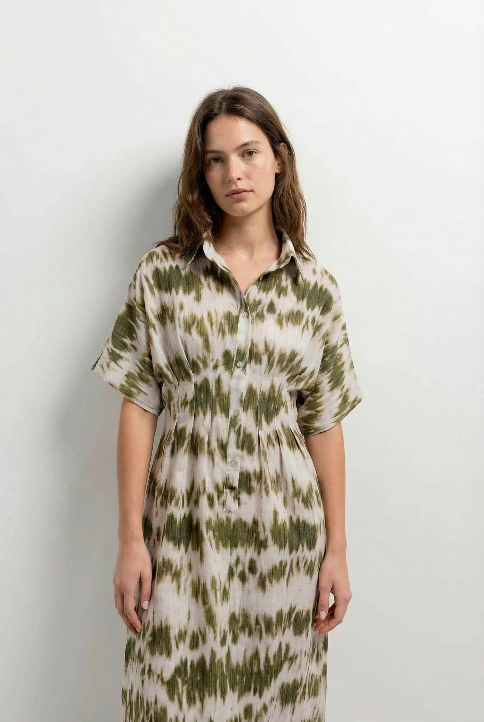 Robe chemise tie-dye kaki et blanc