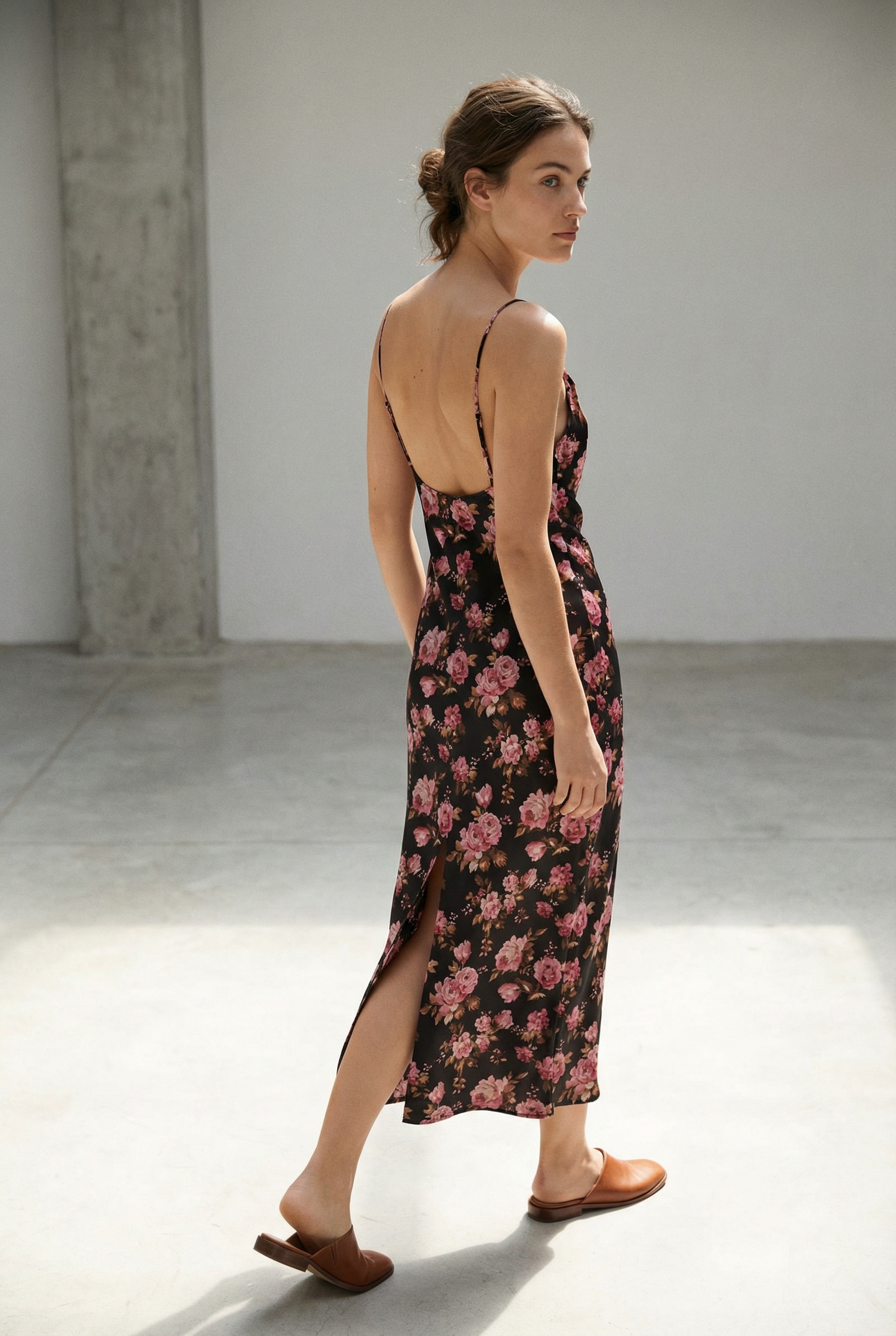 Robe longue satinée fleurie noire