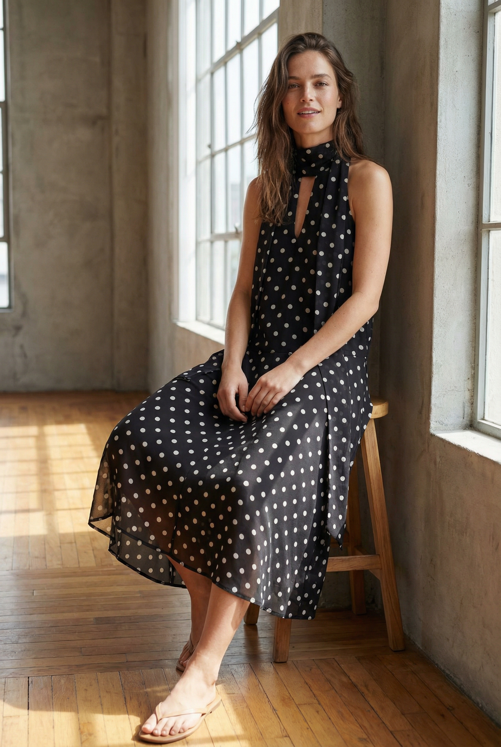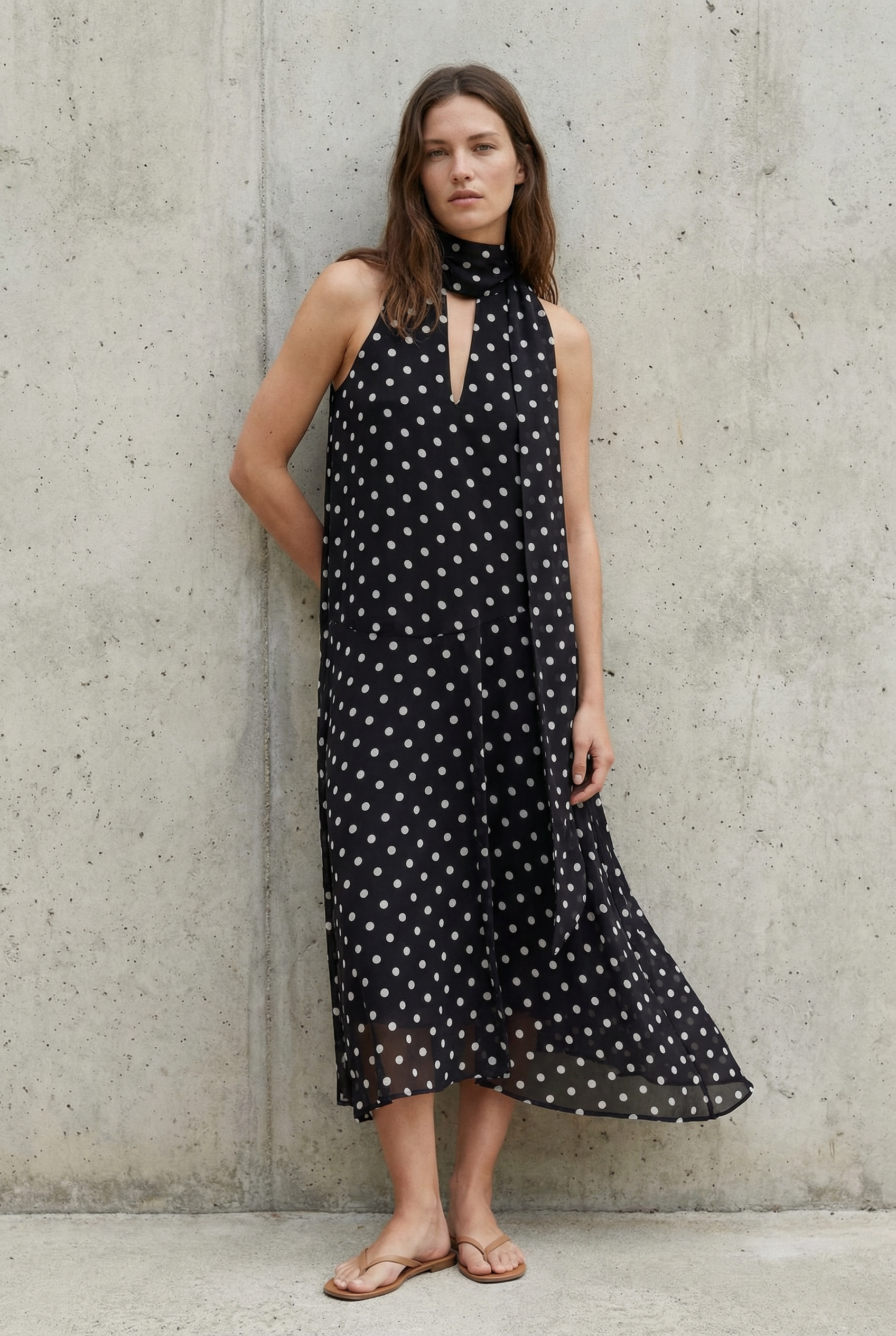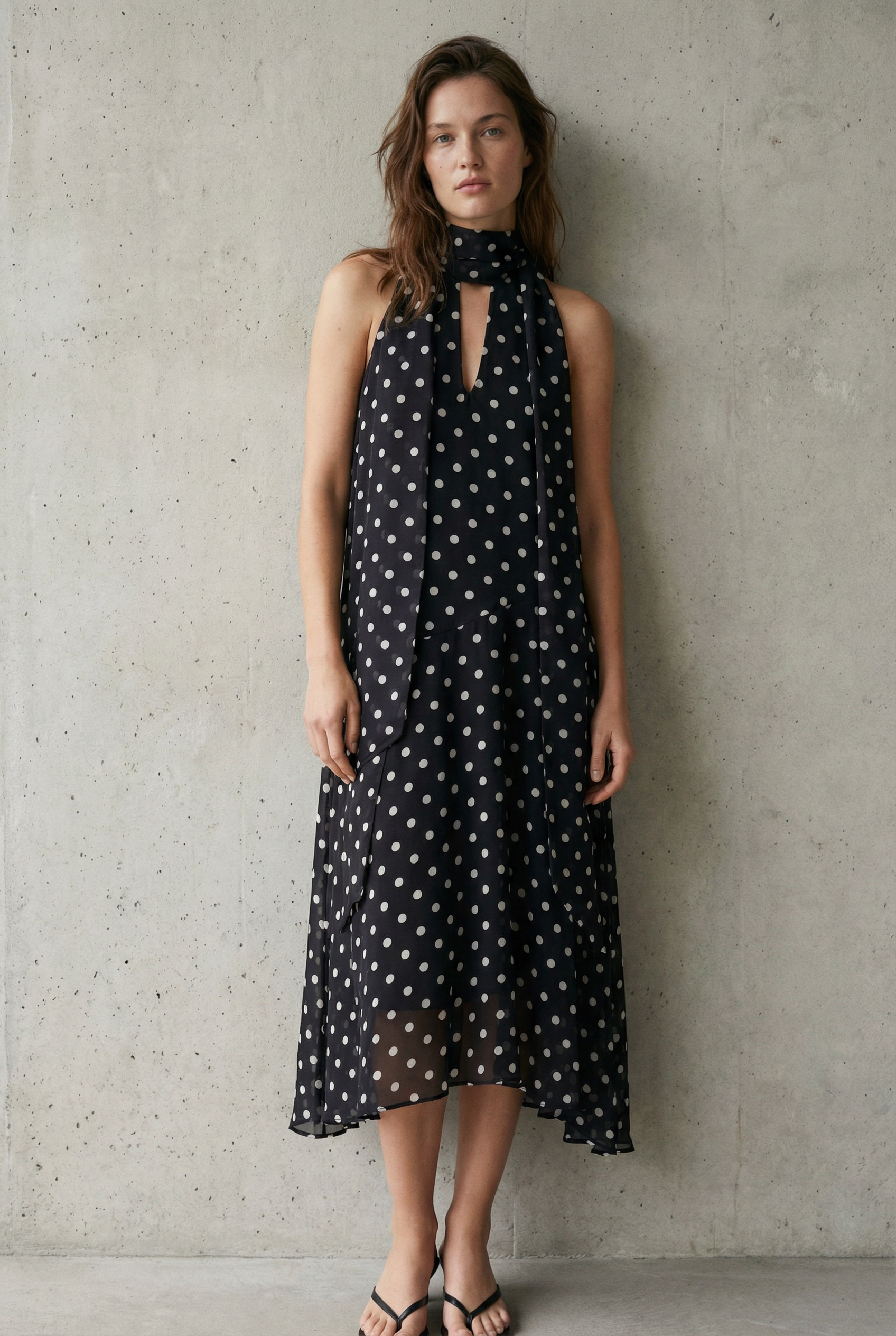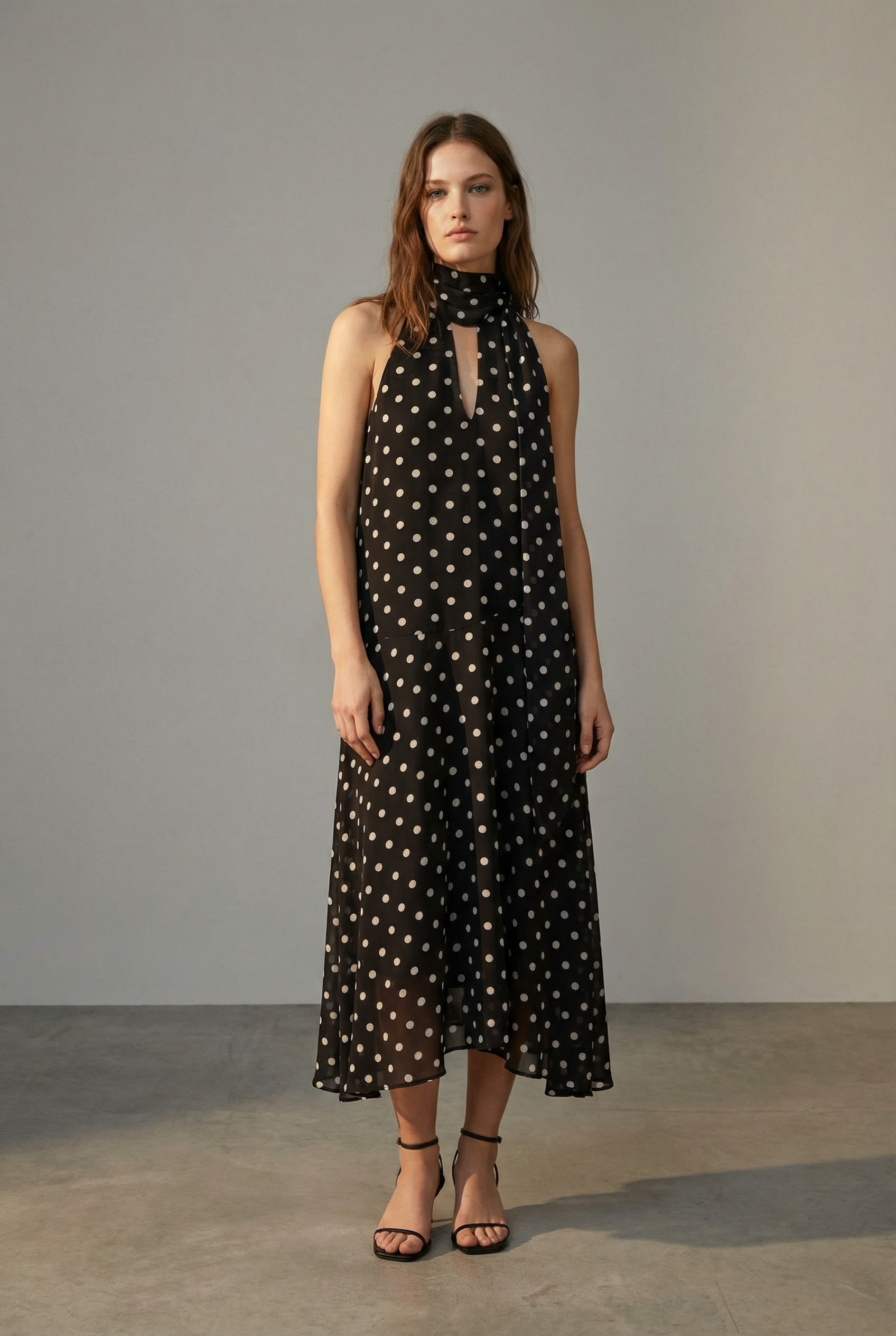 Robe noire fluide à pois blancs