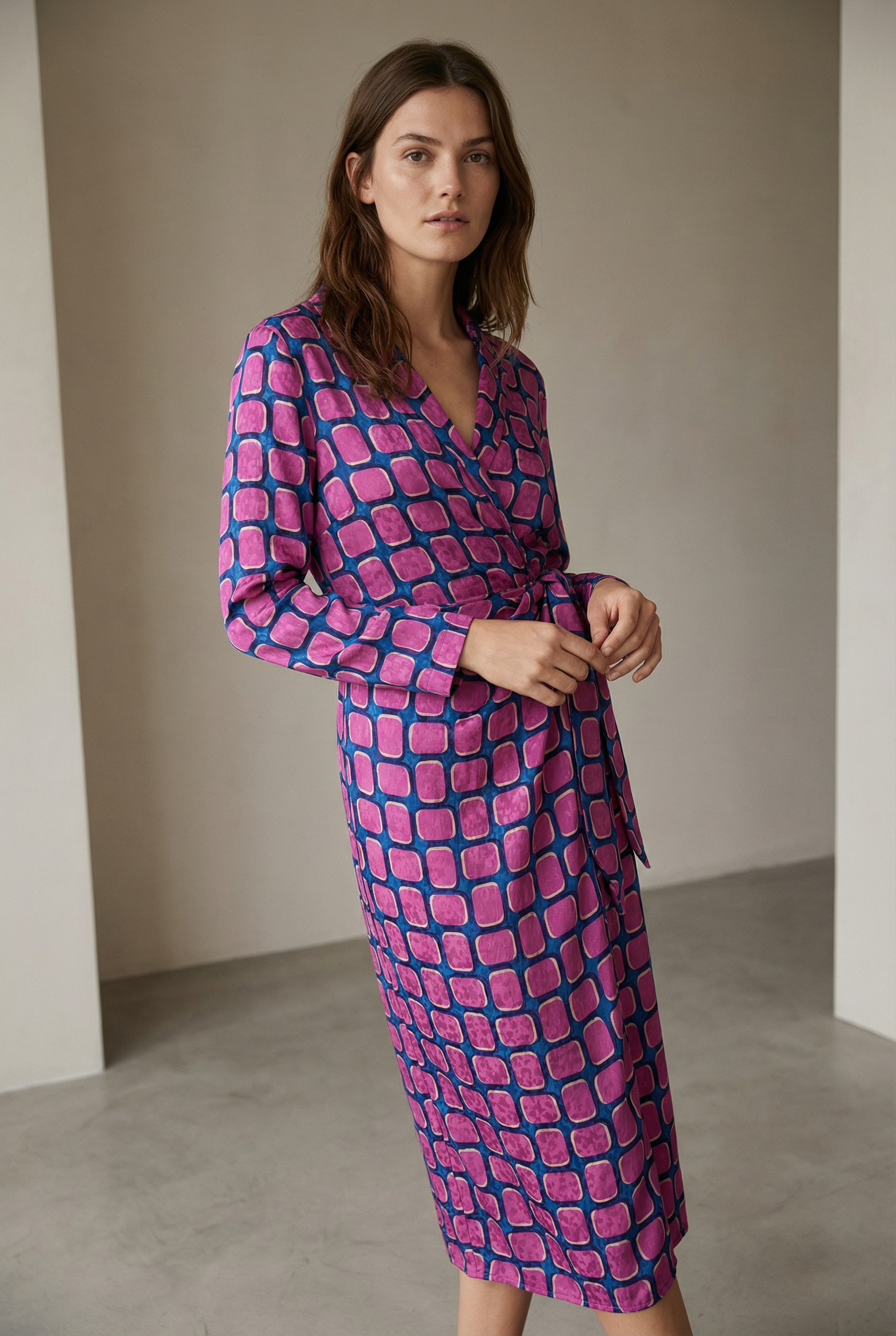 Robe portefeuille évasée rose imprimée