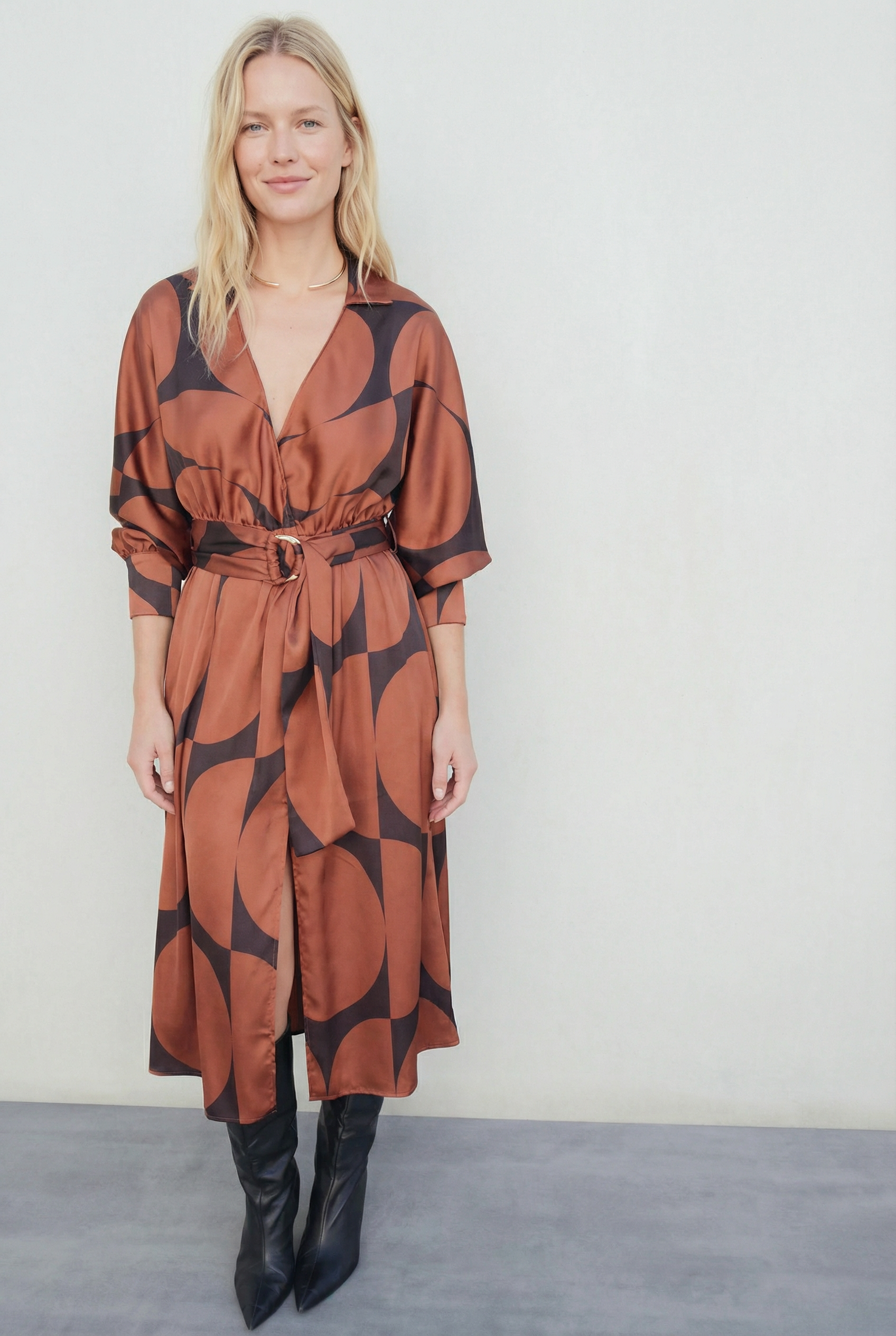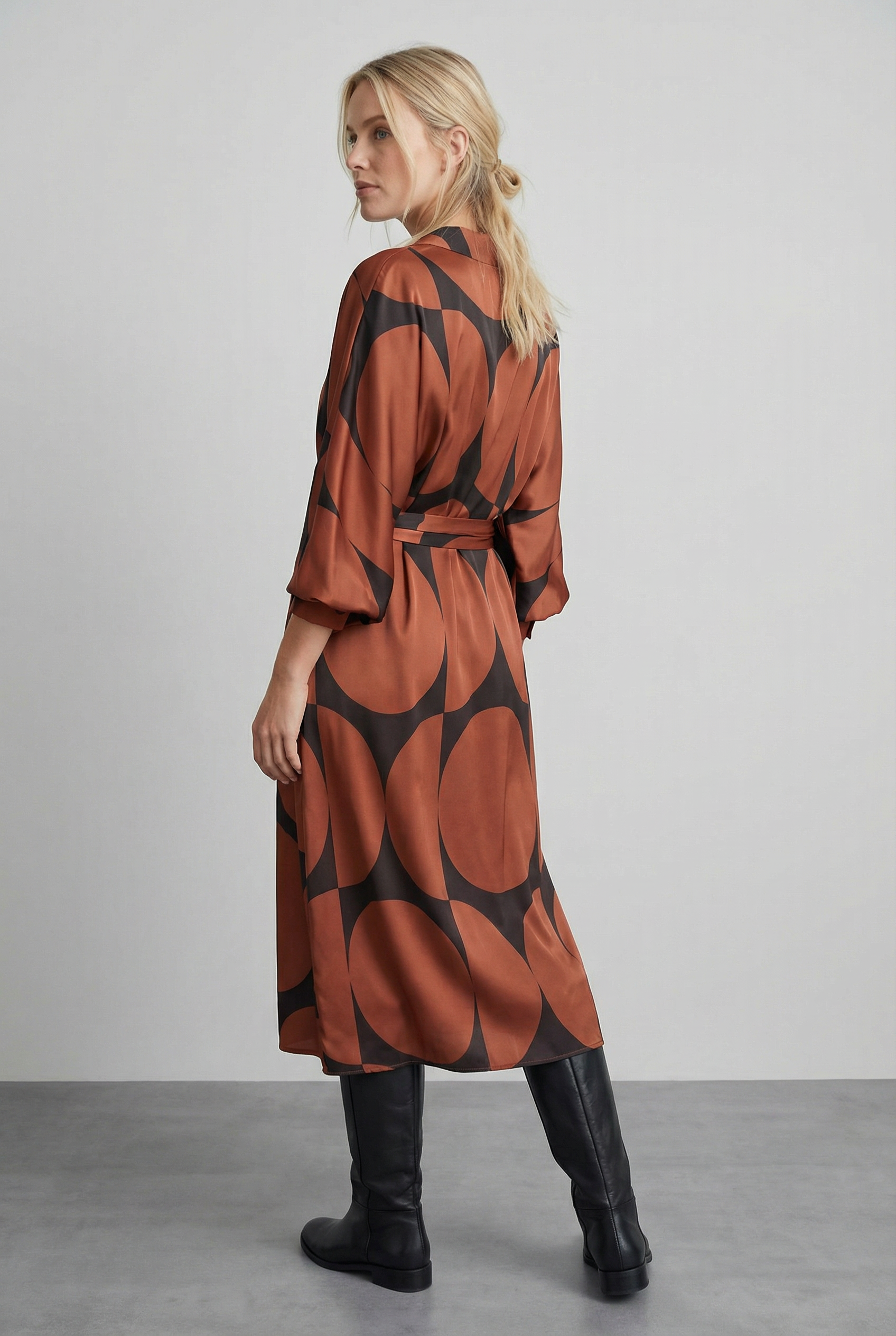 Robe portefeuille imprimé géométrique noir marron