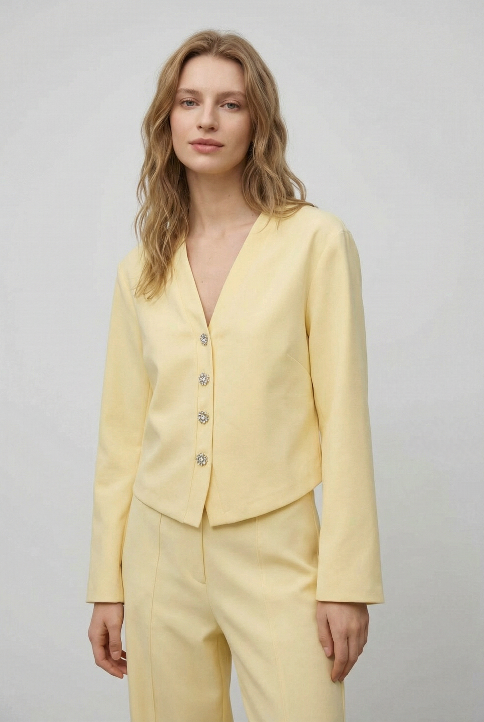 Ensemble deux pièces coton femme – Veste col V et pantalon confortable
