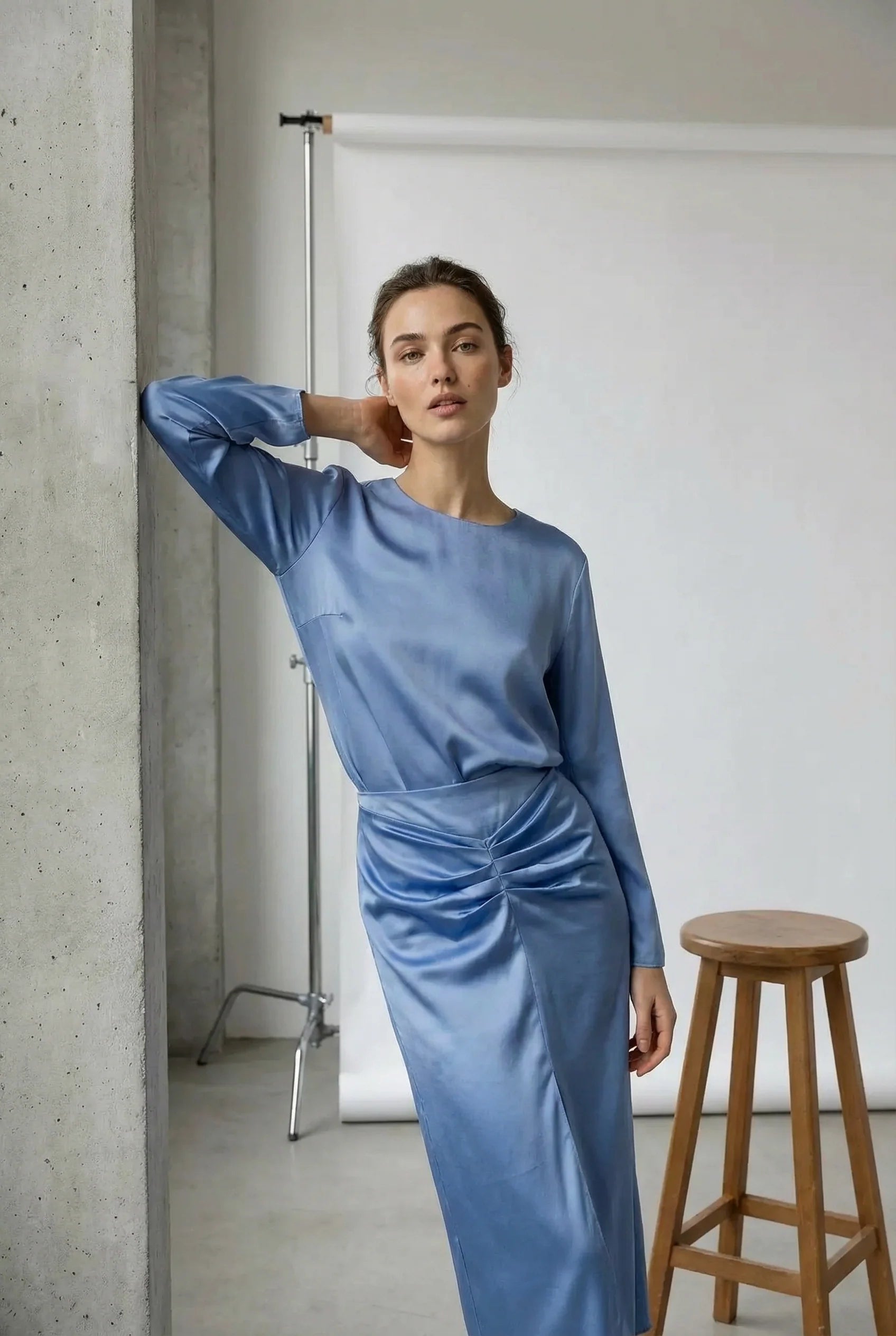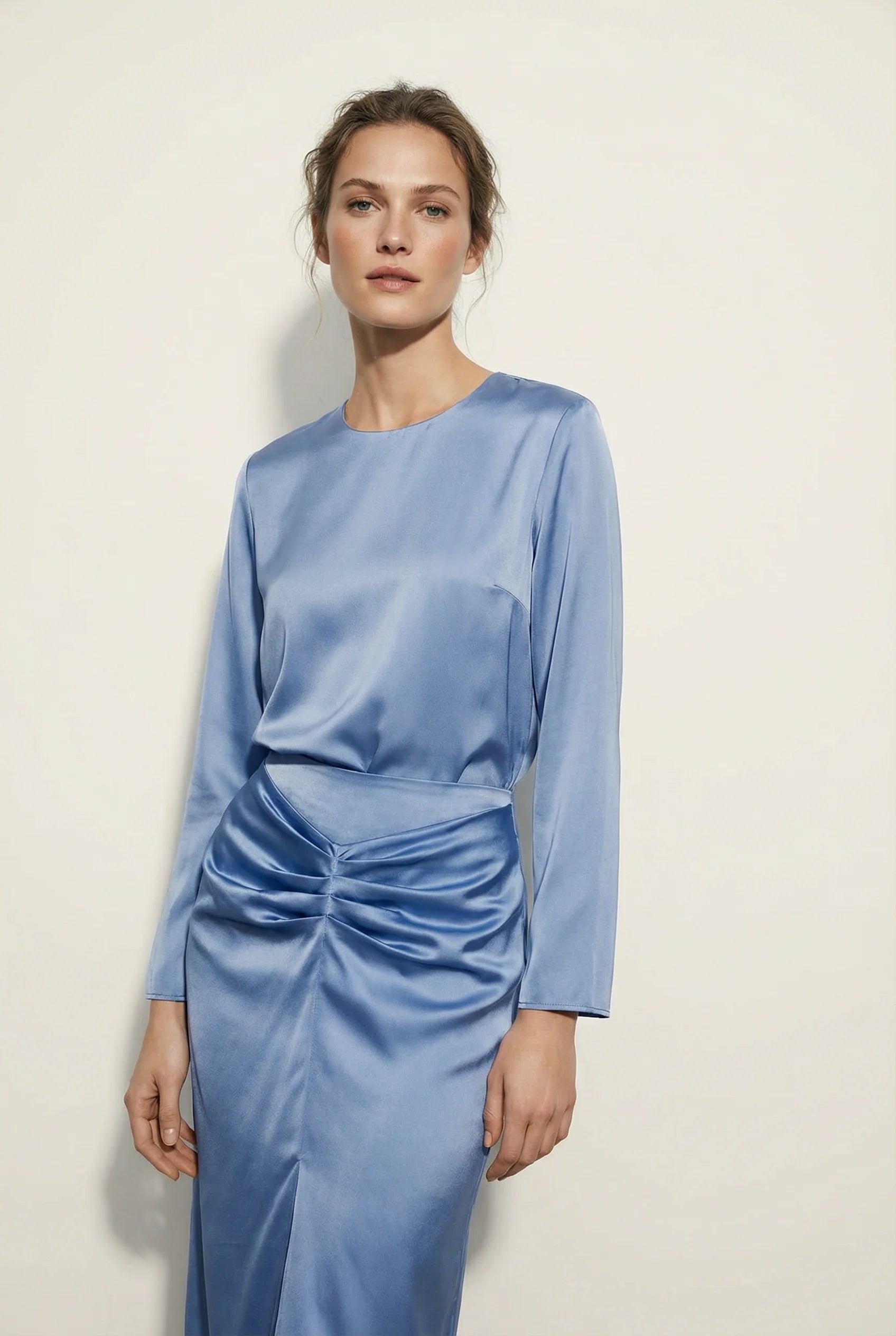 Chemisier Satin Chic Bleu azur