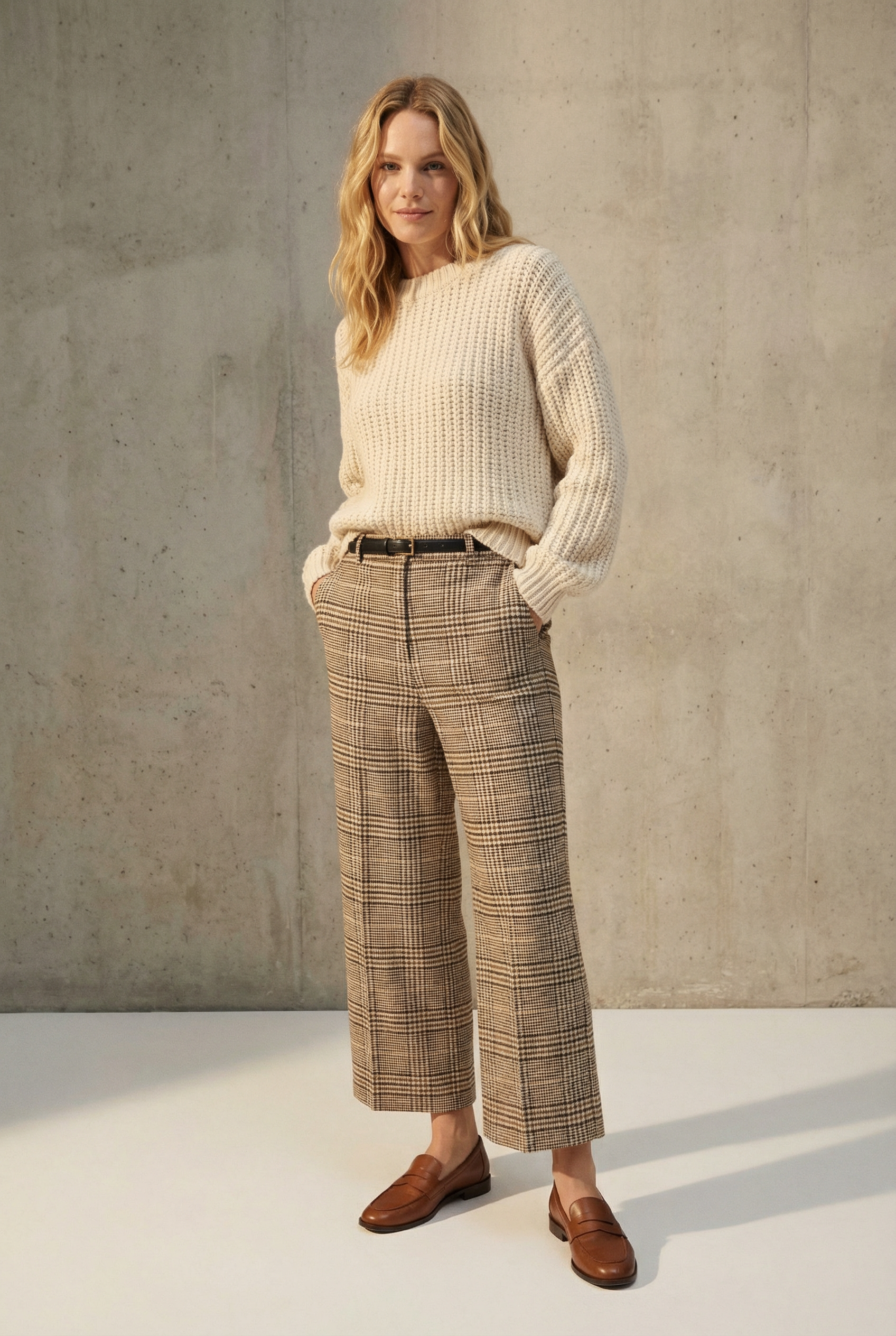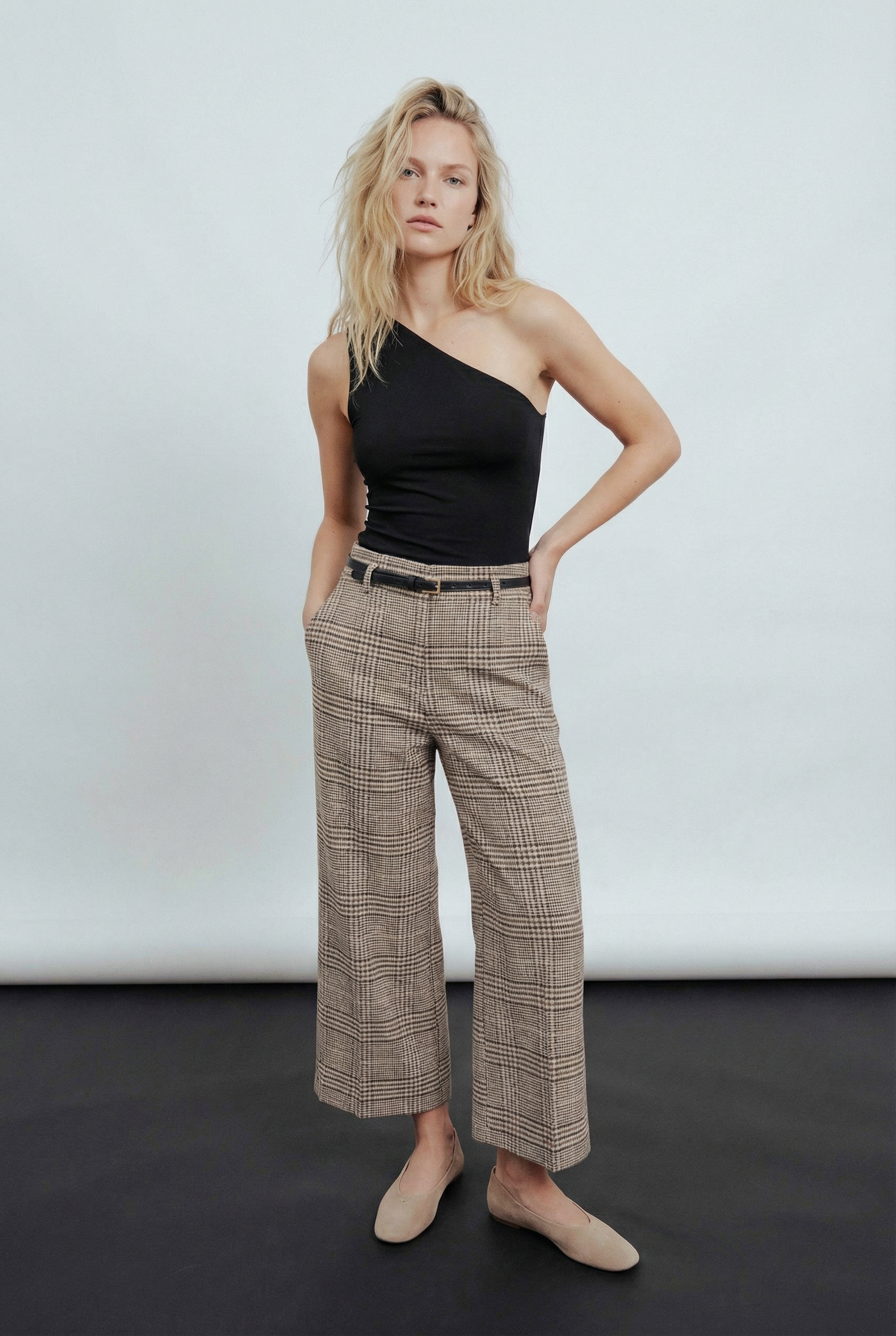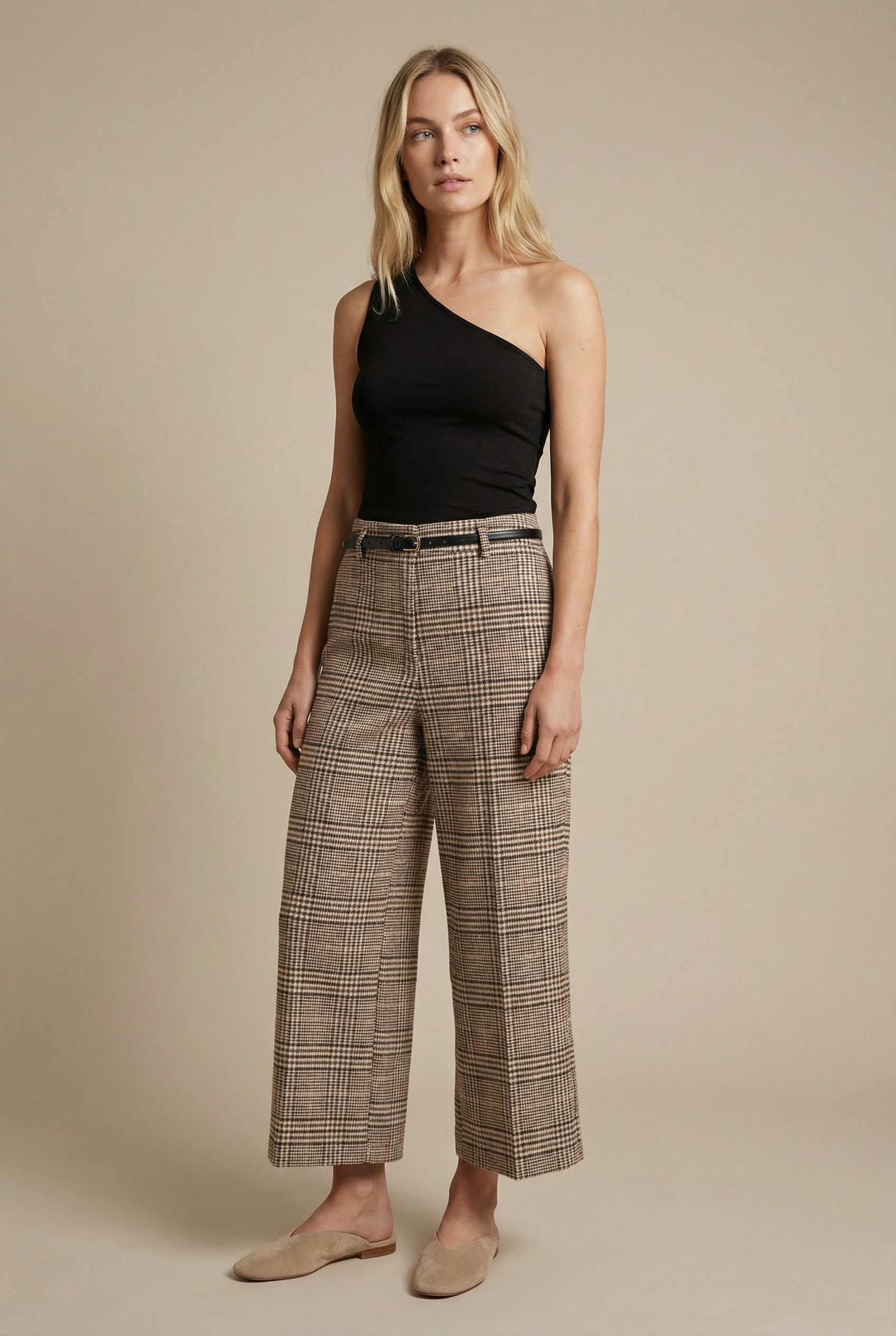 Pantalon Culotte À Carreaux Marron avec ceinture