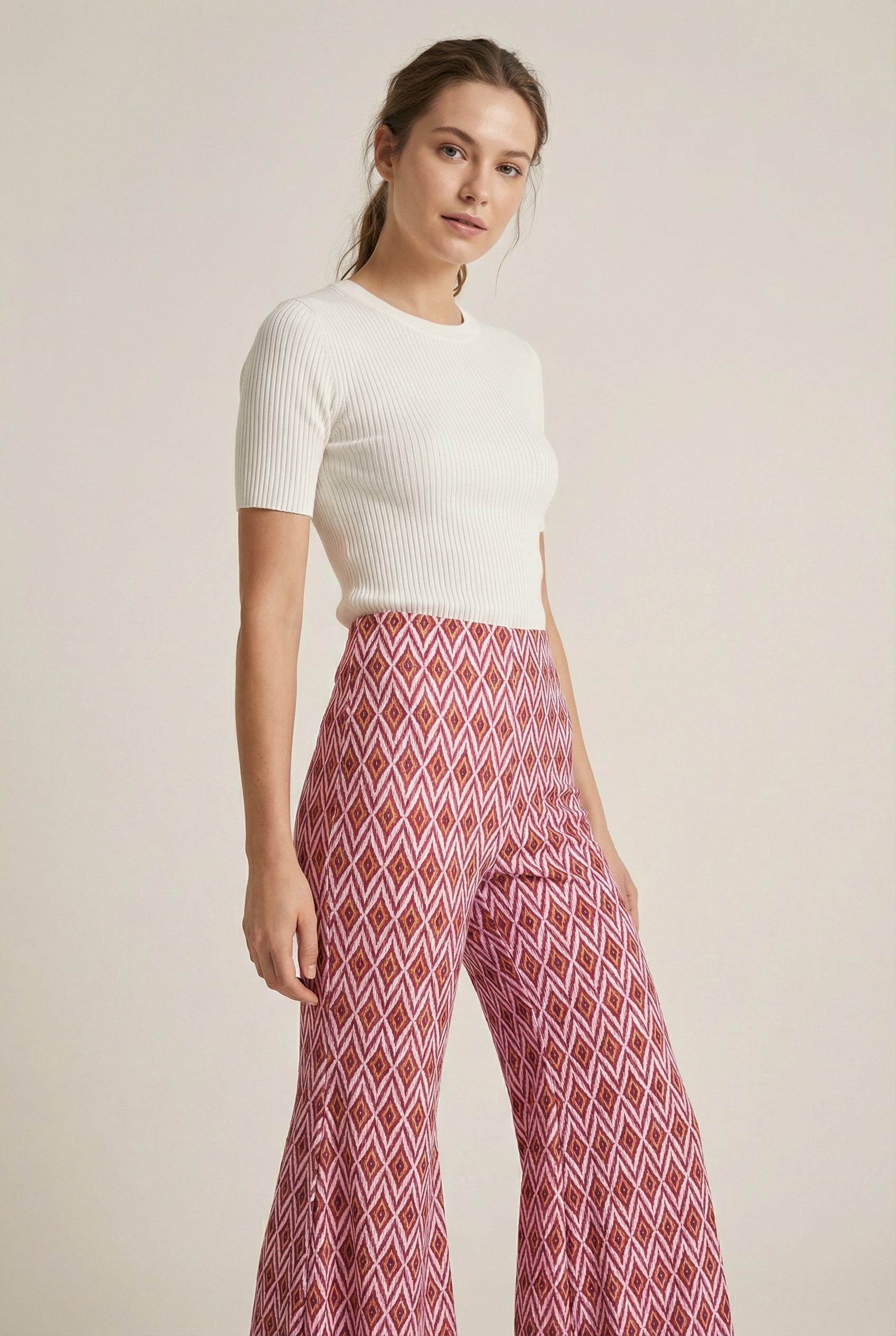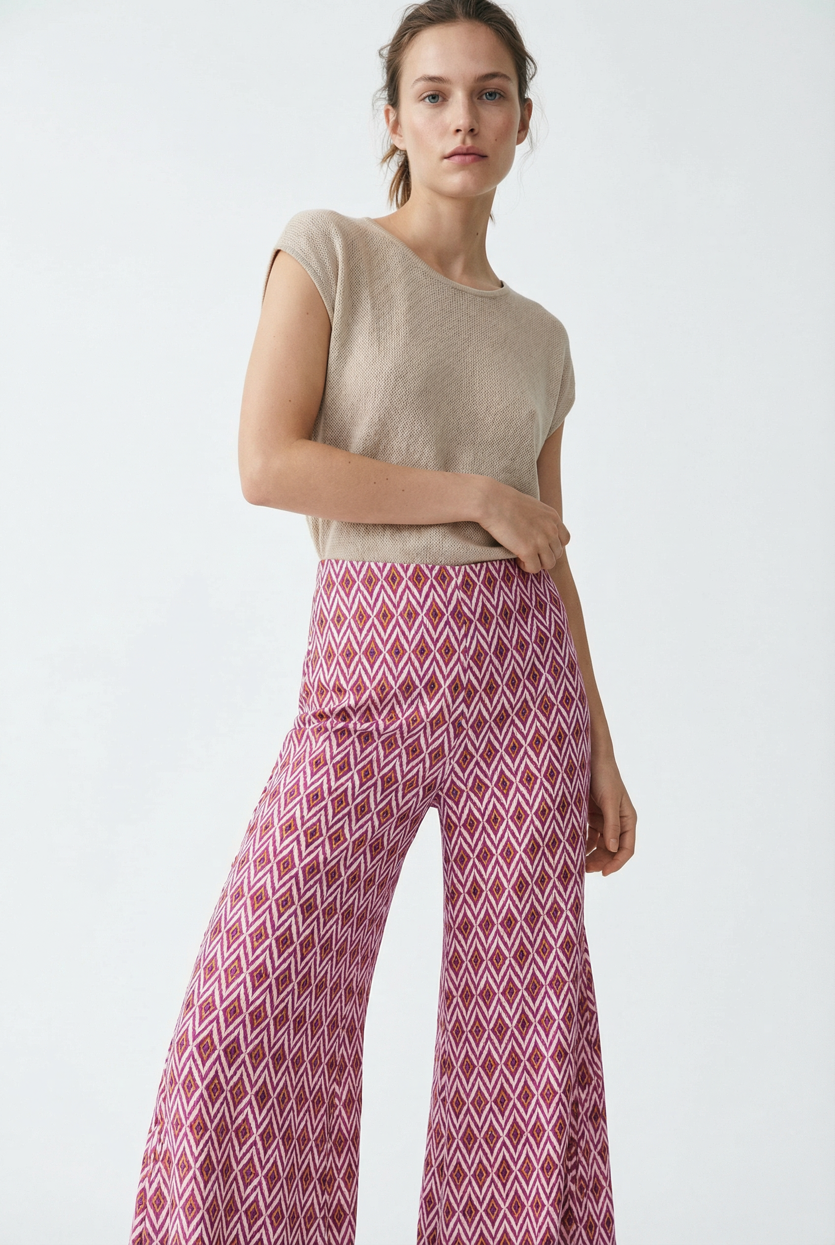Pantalon flare taille haute fluide – Coupe évasée imprimée