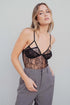 Black Lace Lace-Up Bodysuit - Thin Straps and Sexy Cut for Women