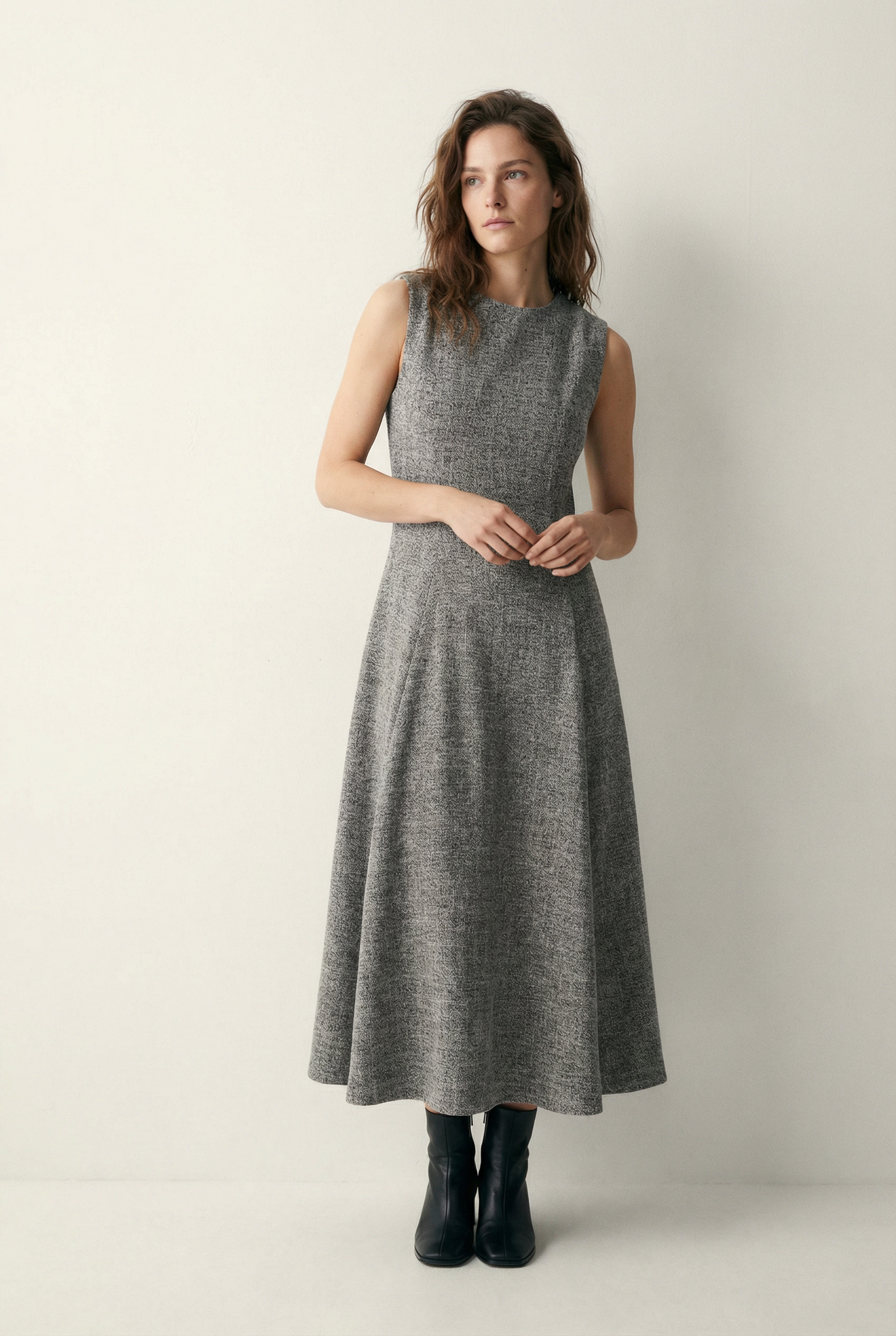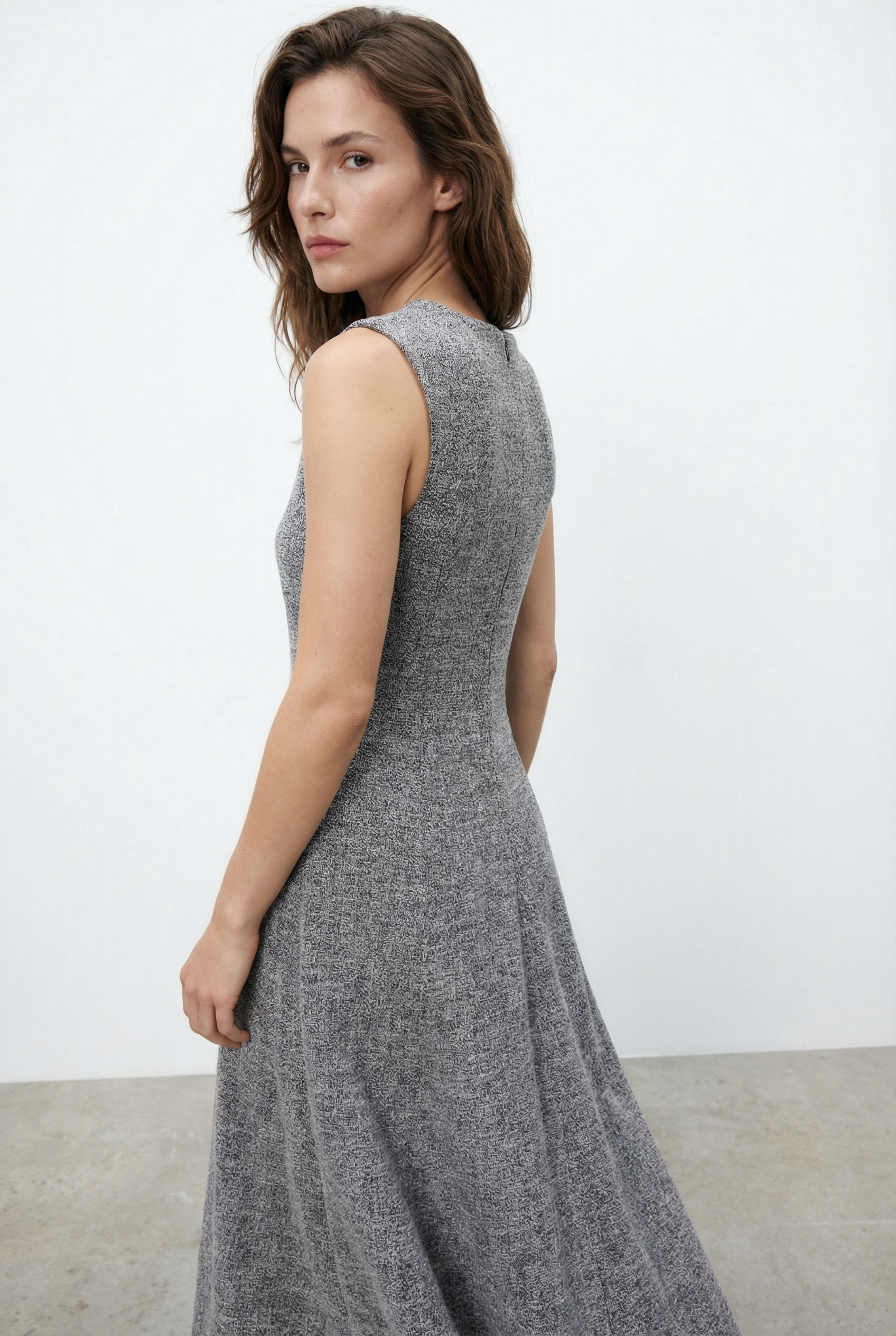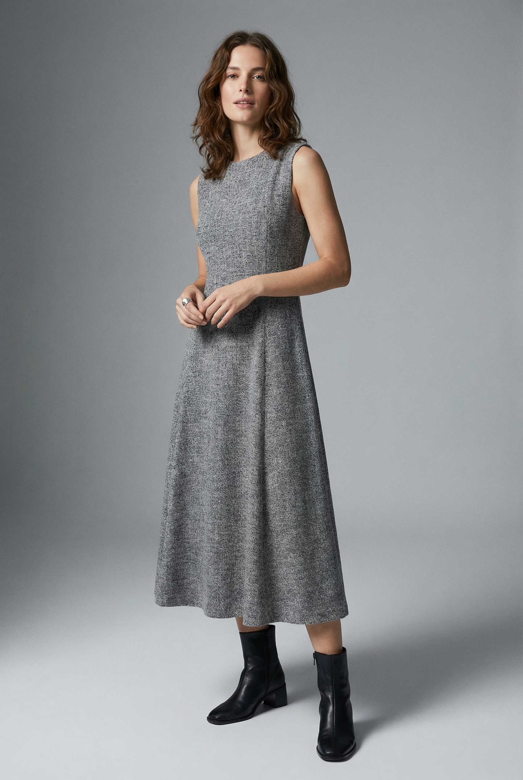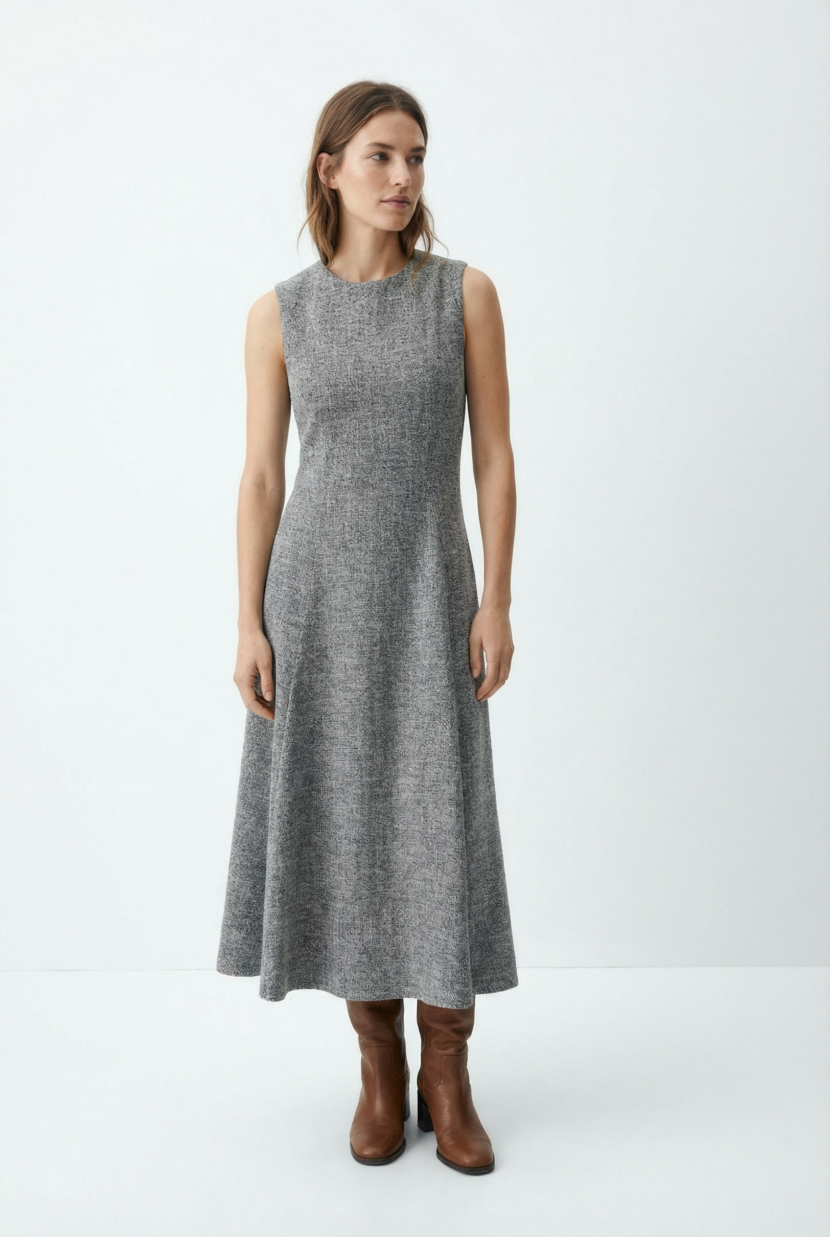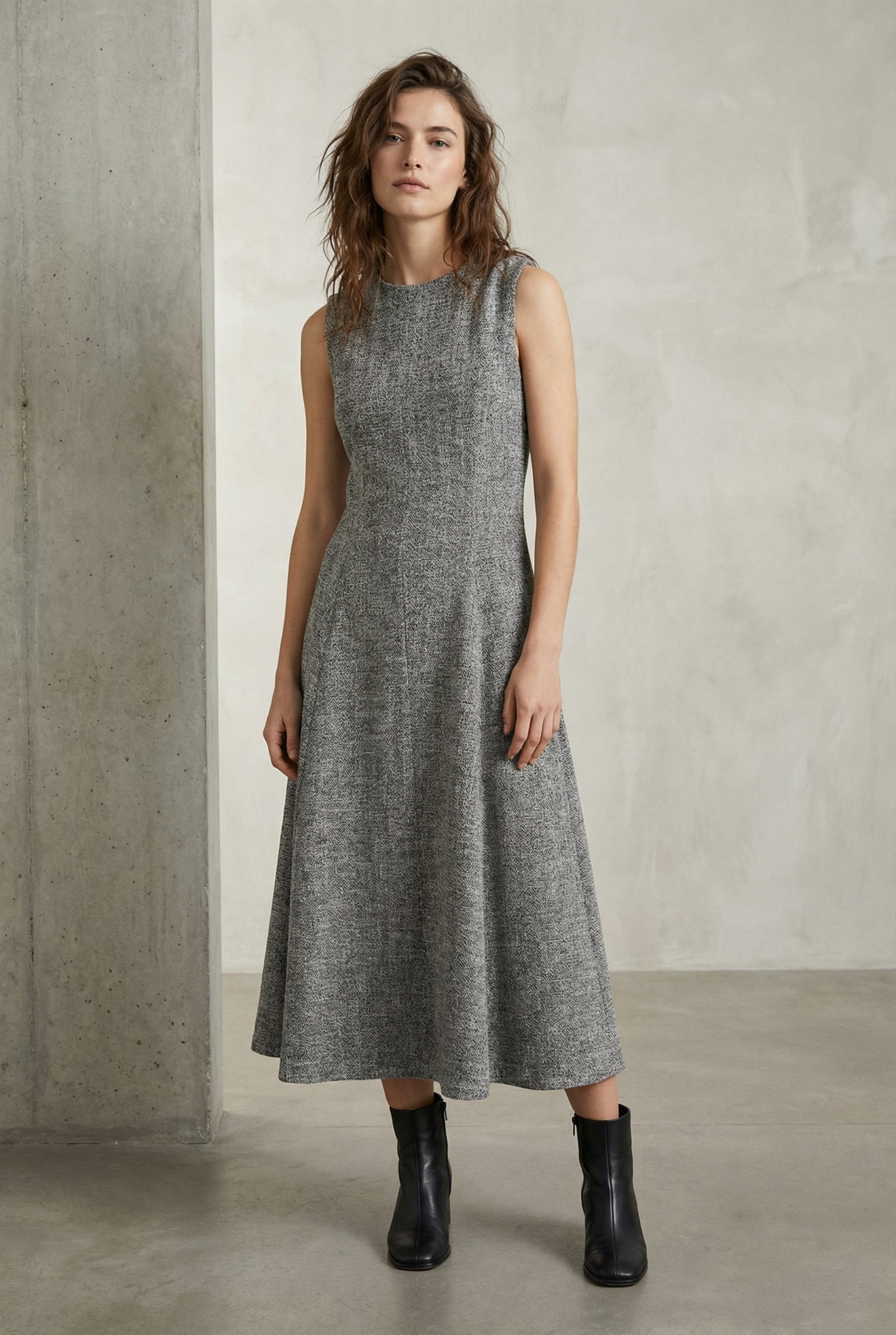 Robe hiver midi droite évasée grise