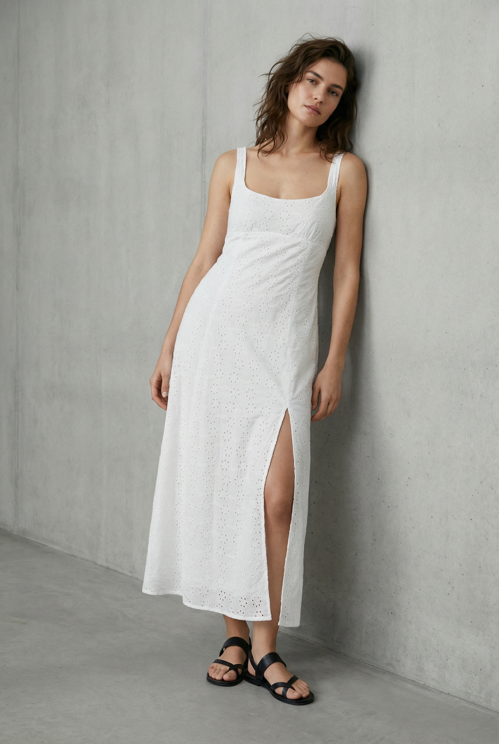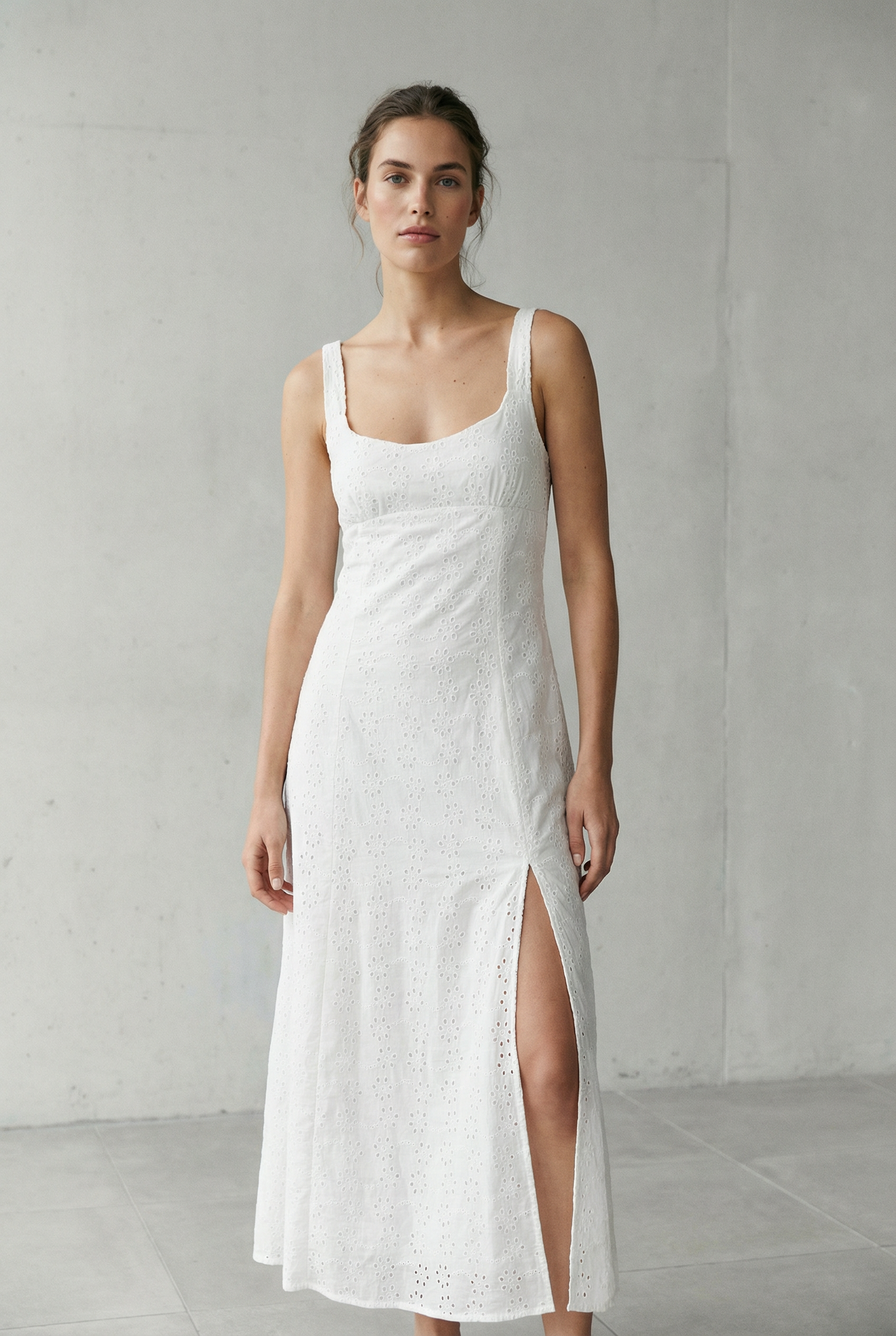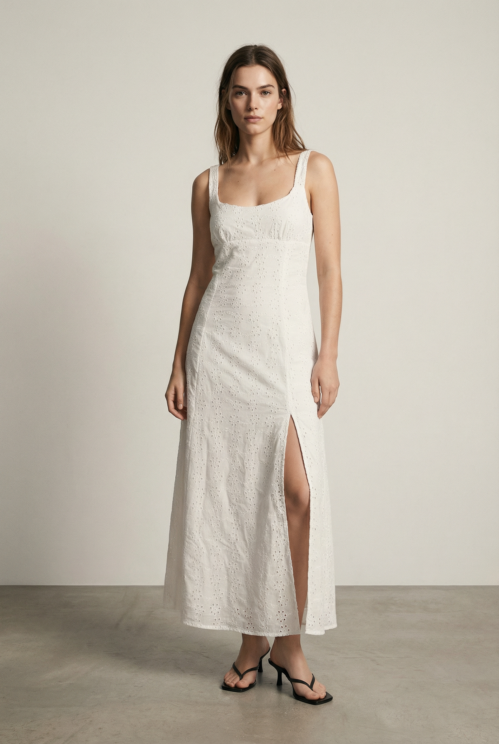 Vestido largo blanco con bordado inglés: elegante y vaporoso para un verano chic.
