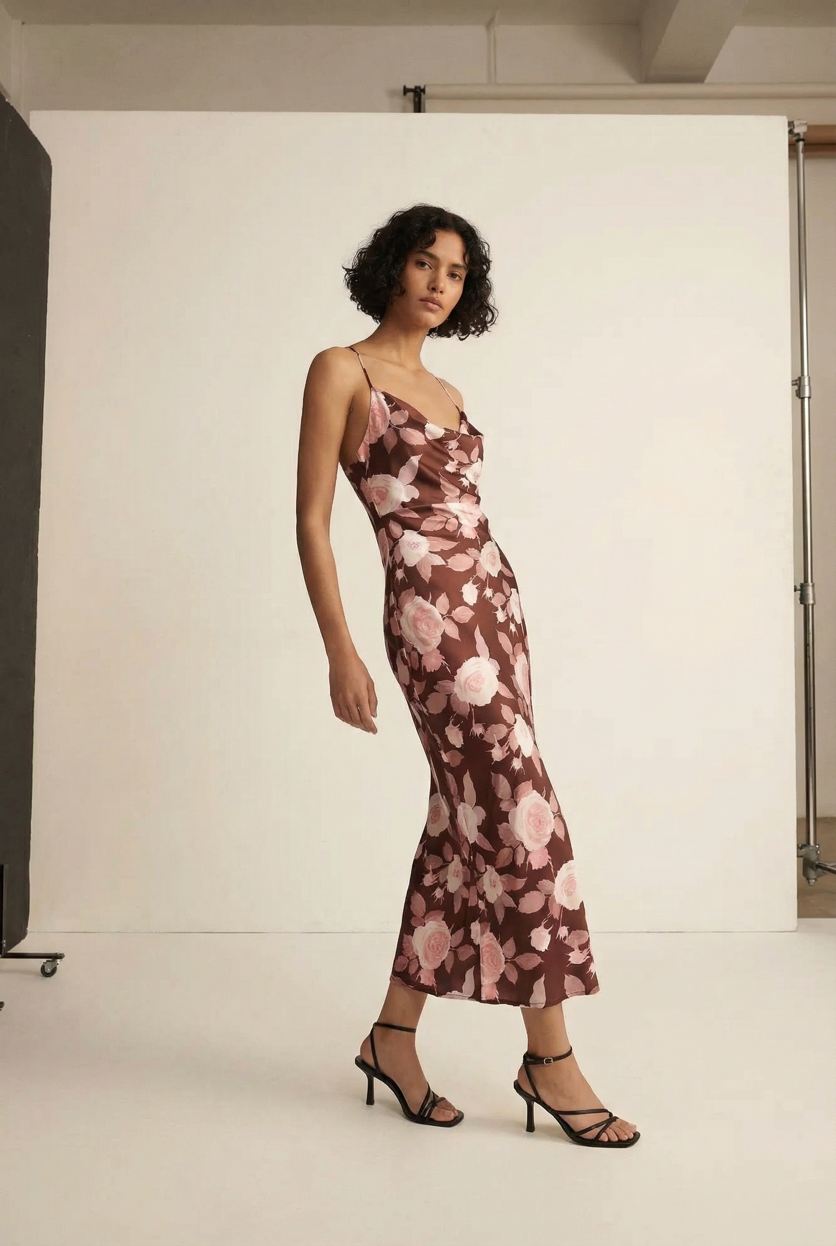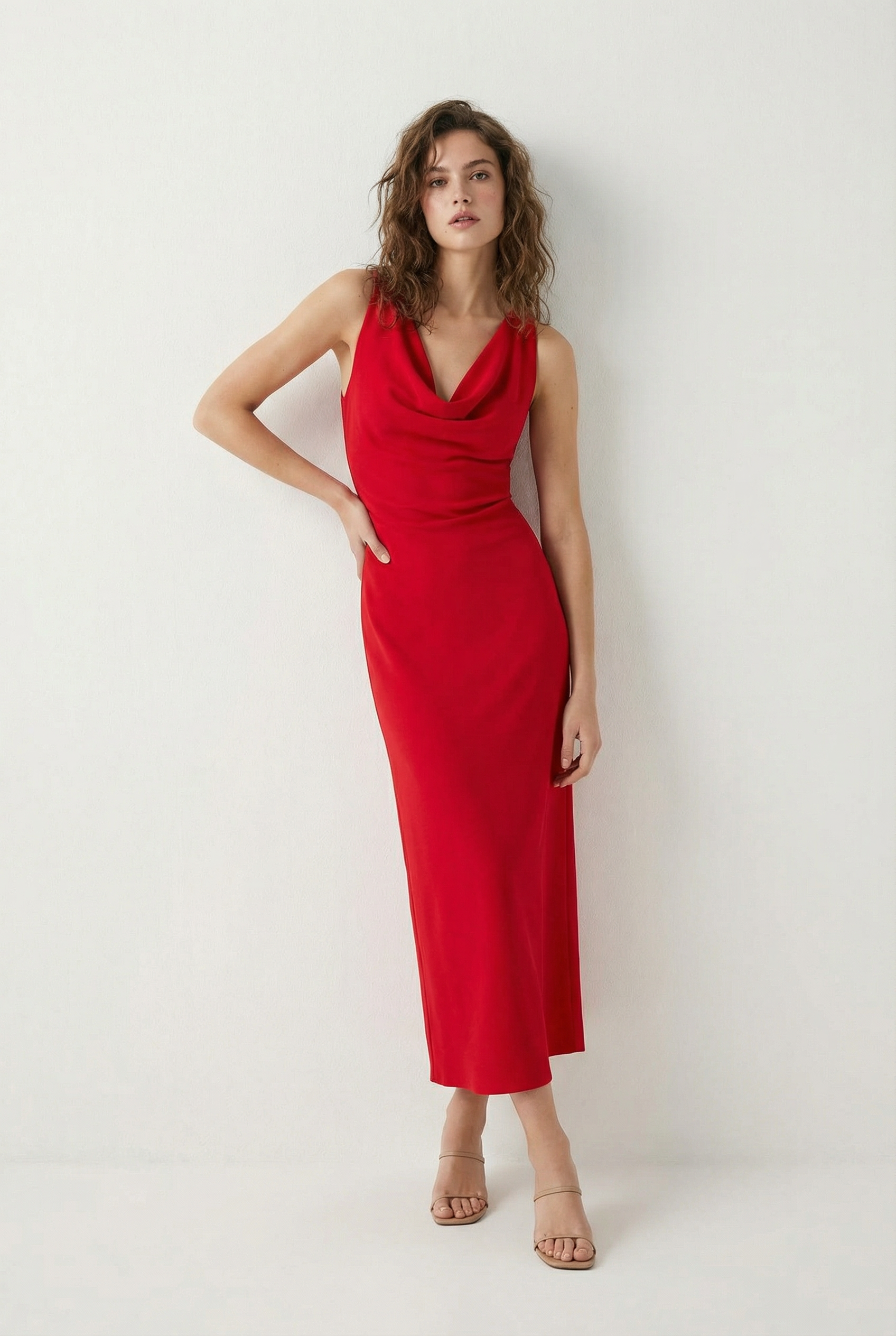 Vestido midi fluido con tirantes finos