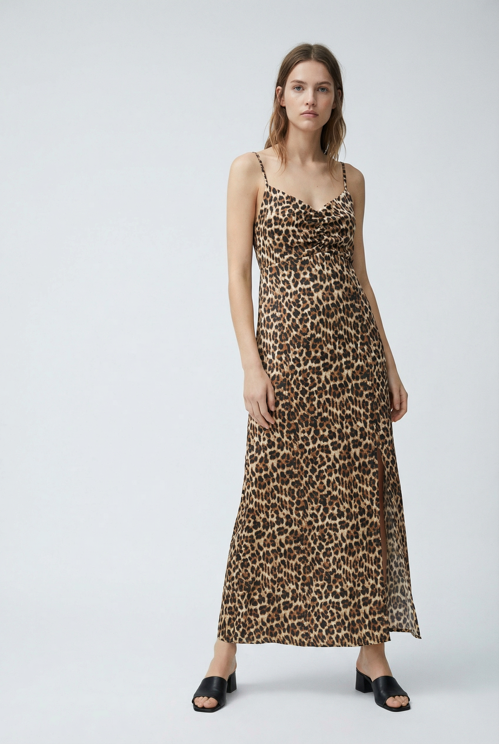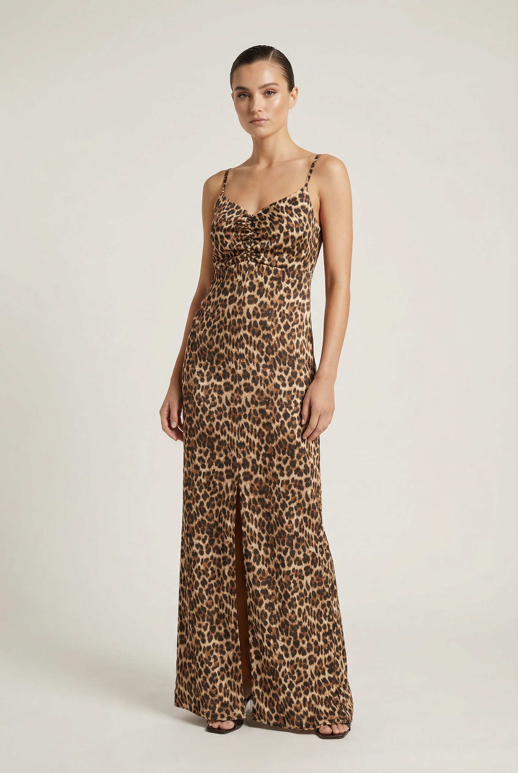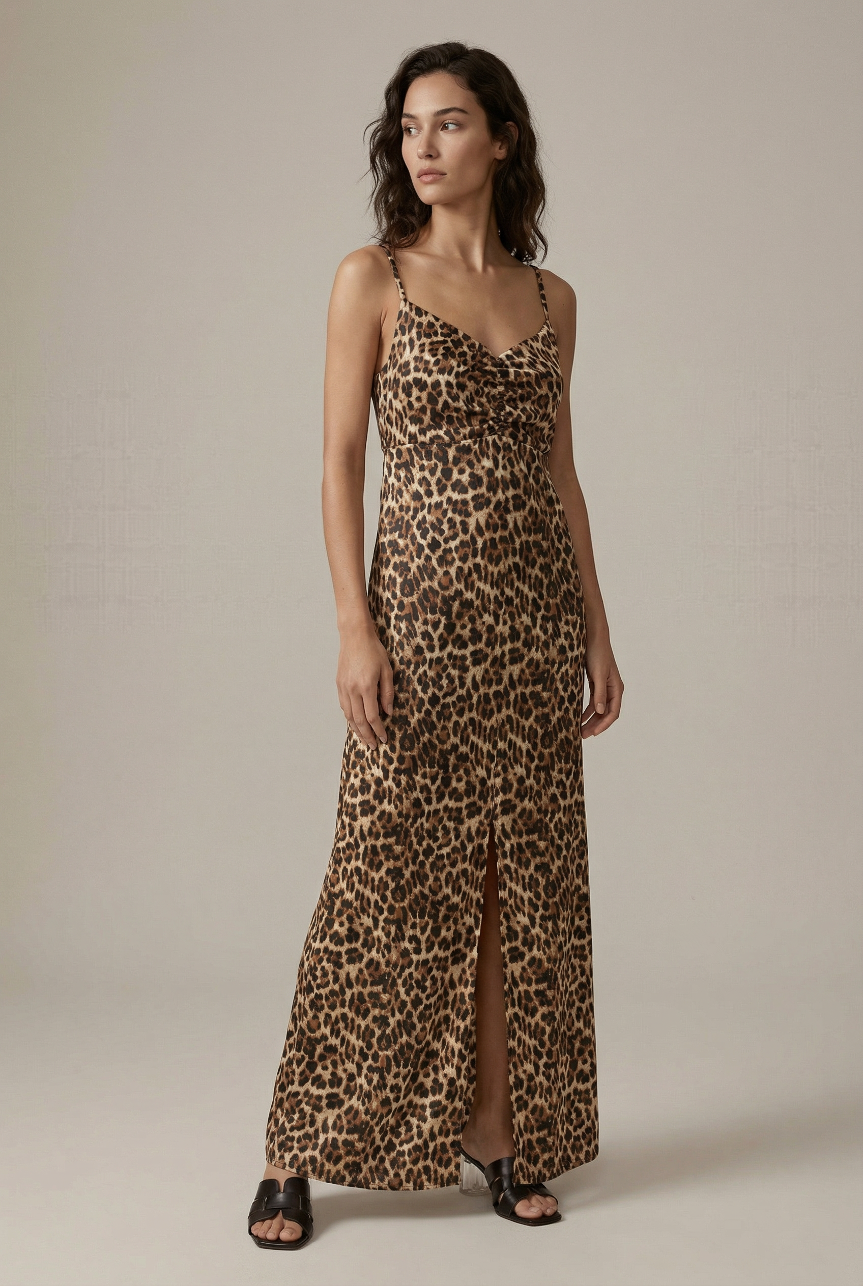 Robe longue satinée léopard