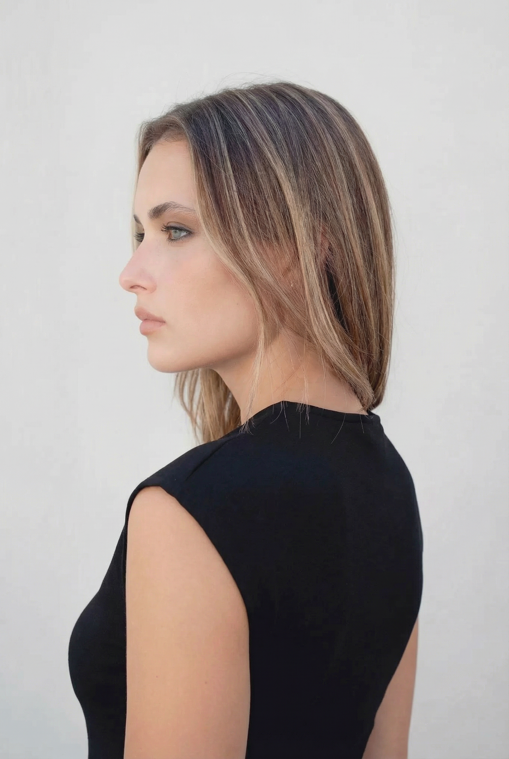 Elegante vestido largo negro sin mangas - Corte midi, bajo festoneado, cuello redondo