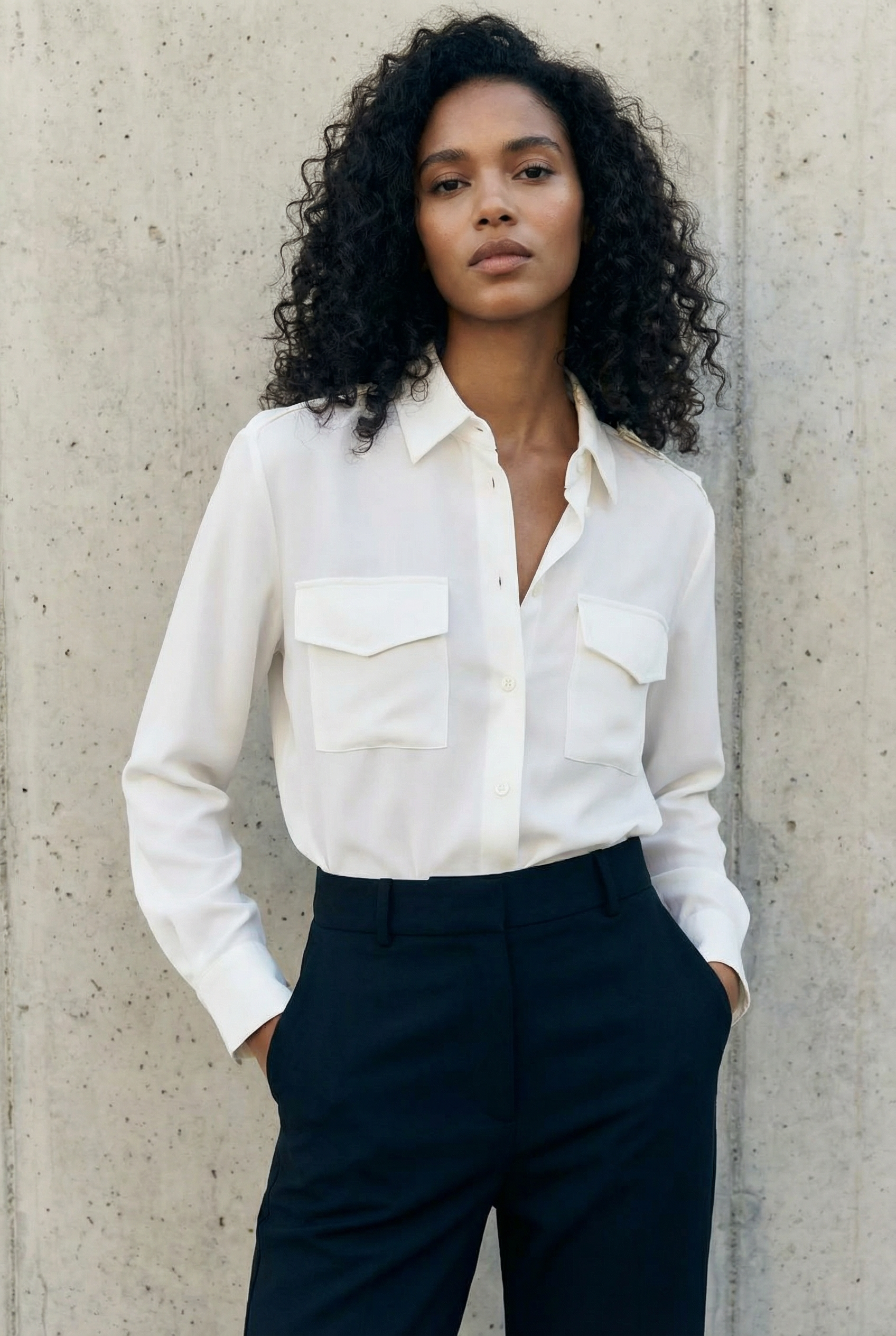 Camisa blanca de mujer con bolsillos: elegancia práctica para cualquier ocasión.