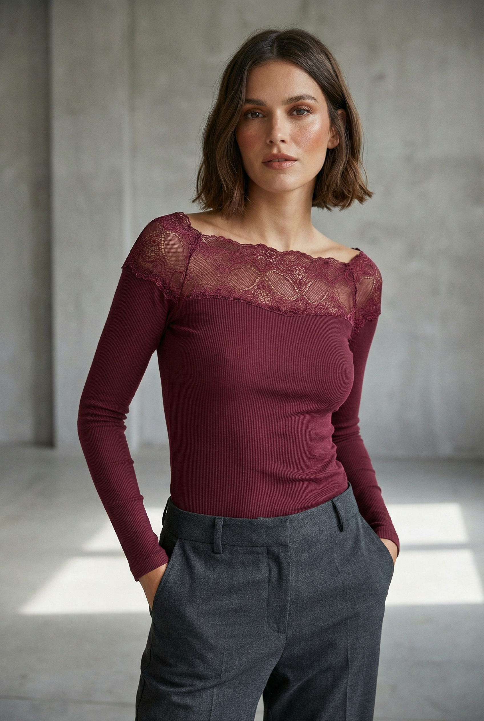 T-shirt dentelle Manches longues