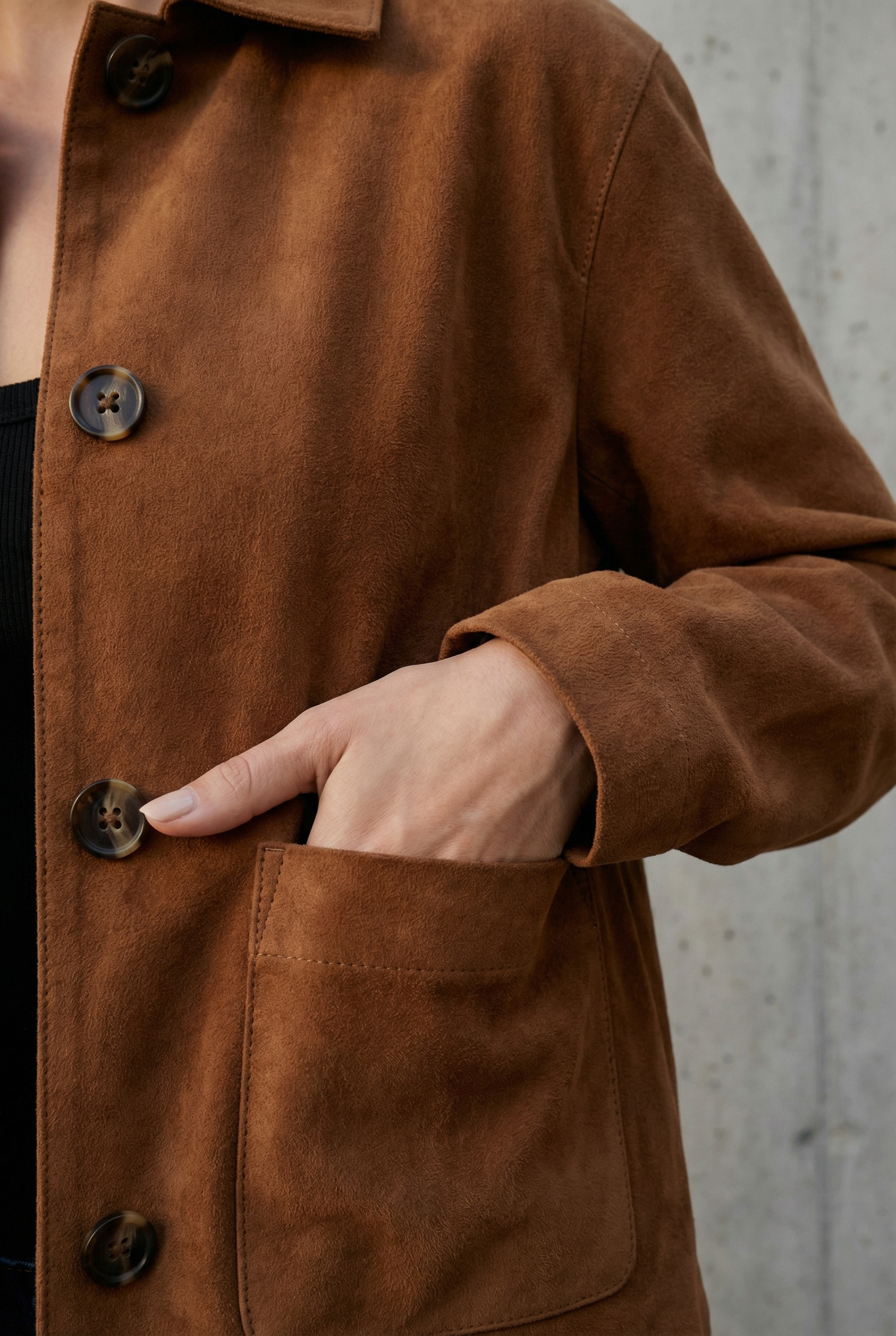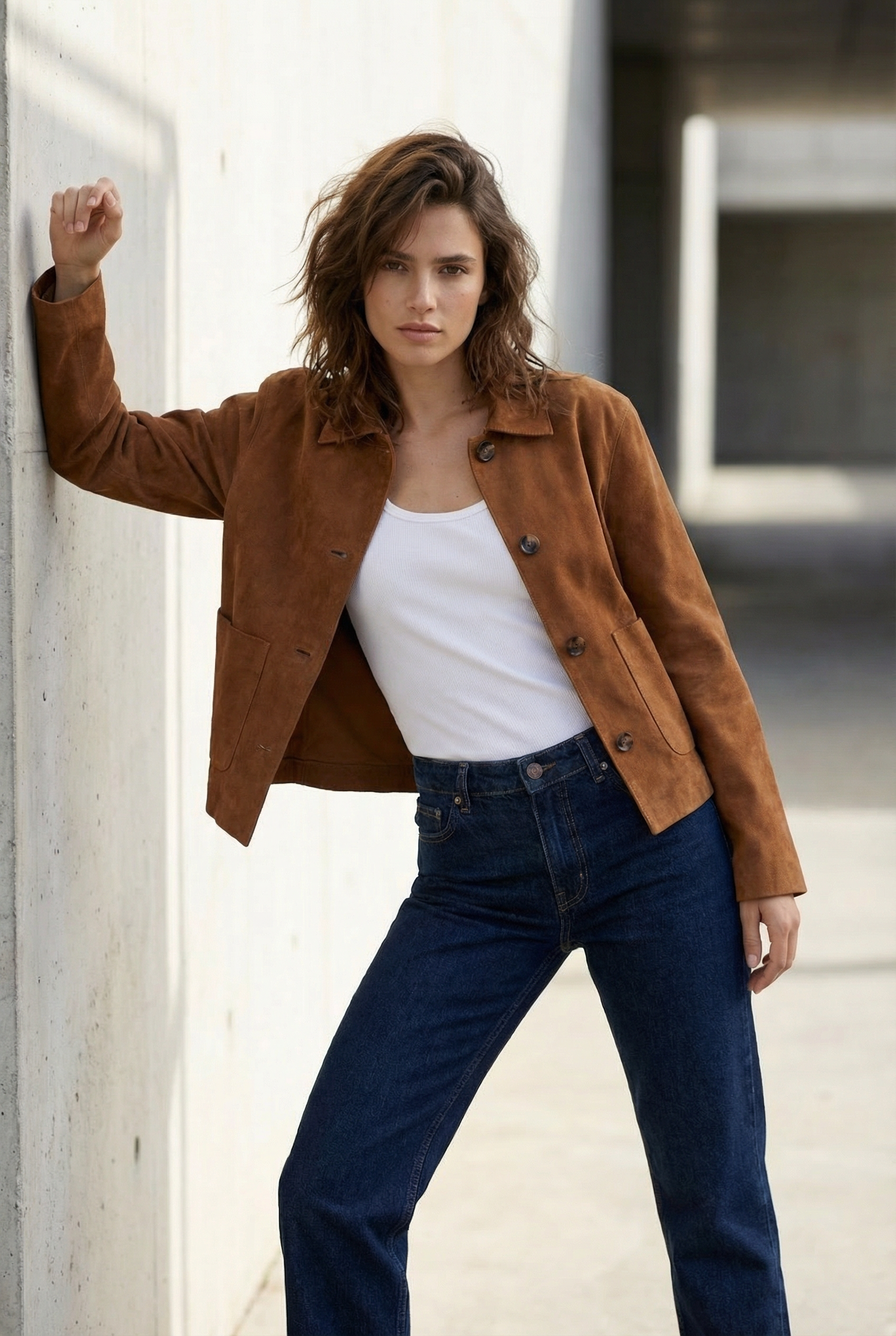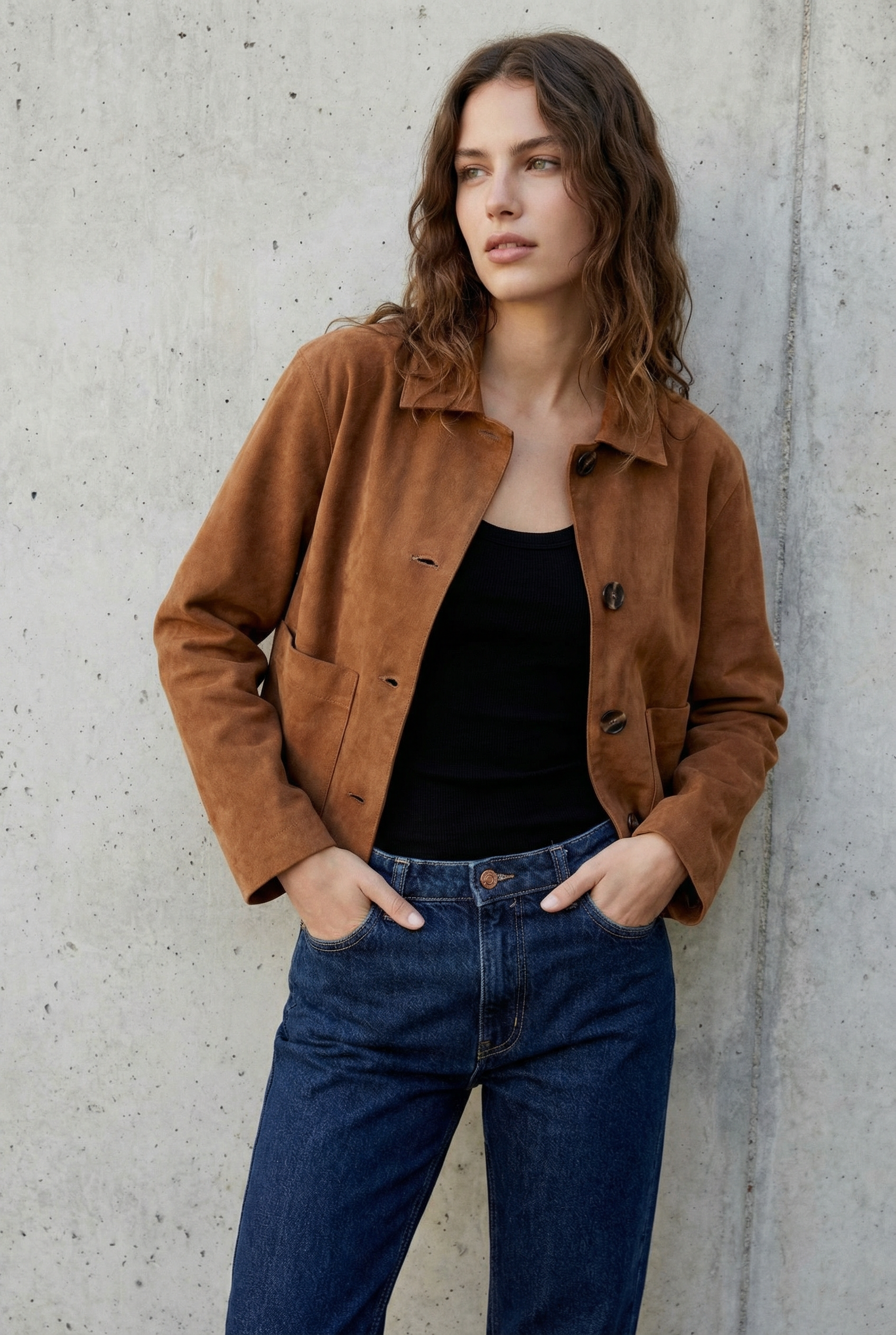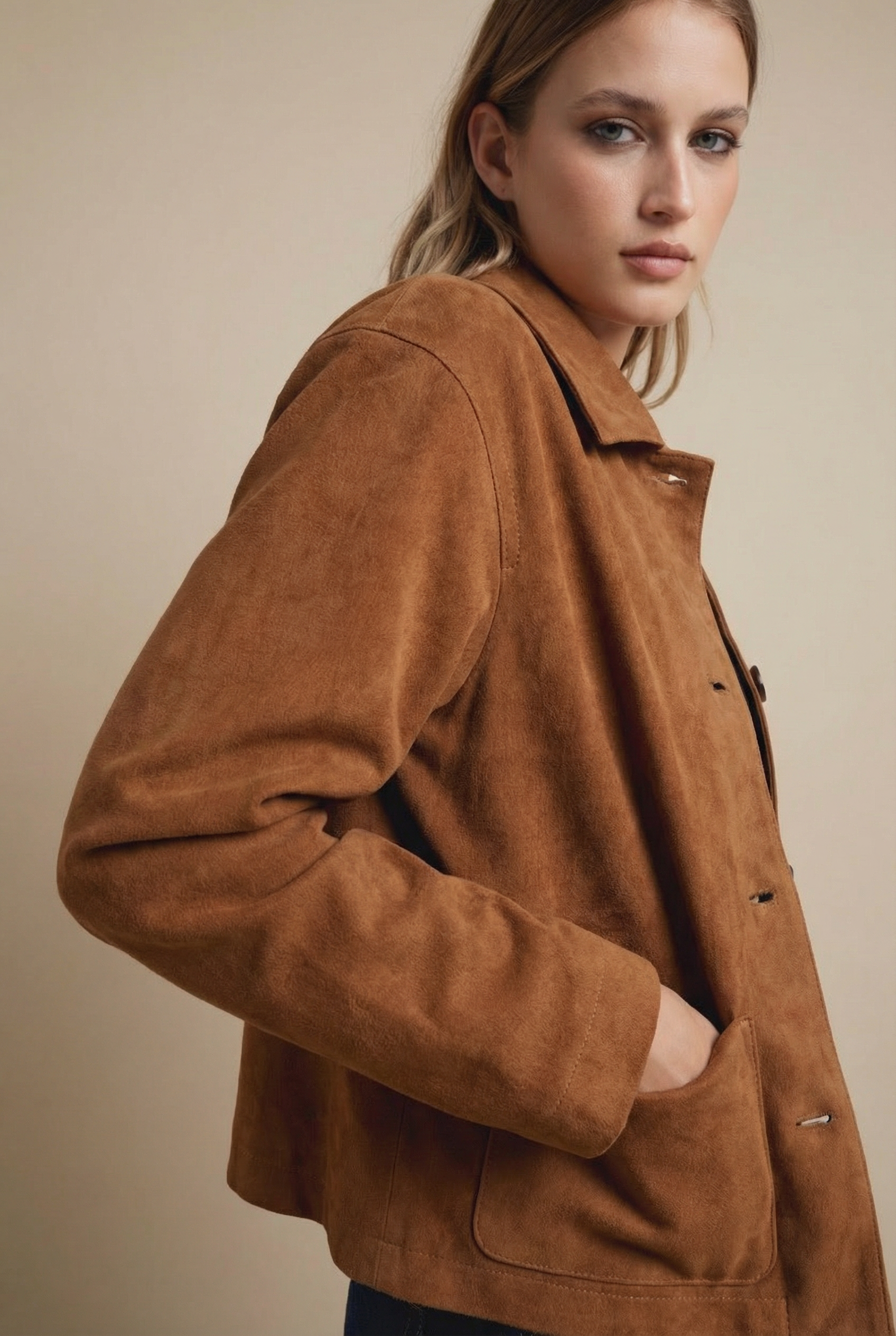 Veste Courte En Daim Marron