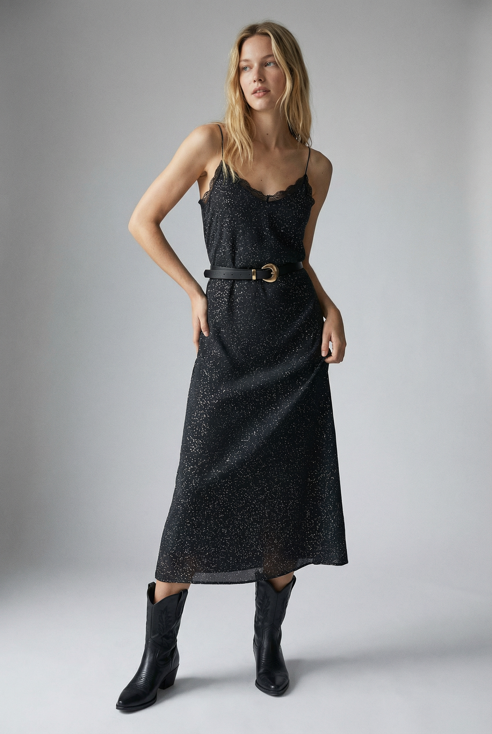 • Ajoutez une pochette minimaliste et des bijoux dorés pour une allure sophistiquée.