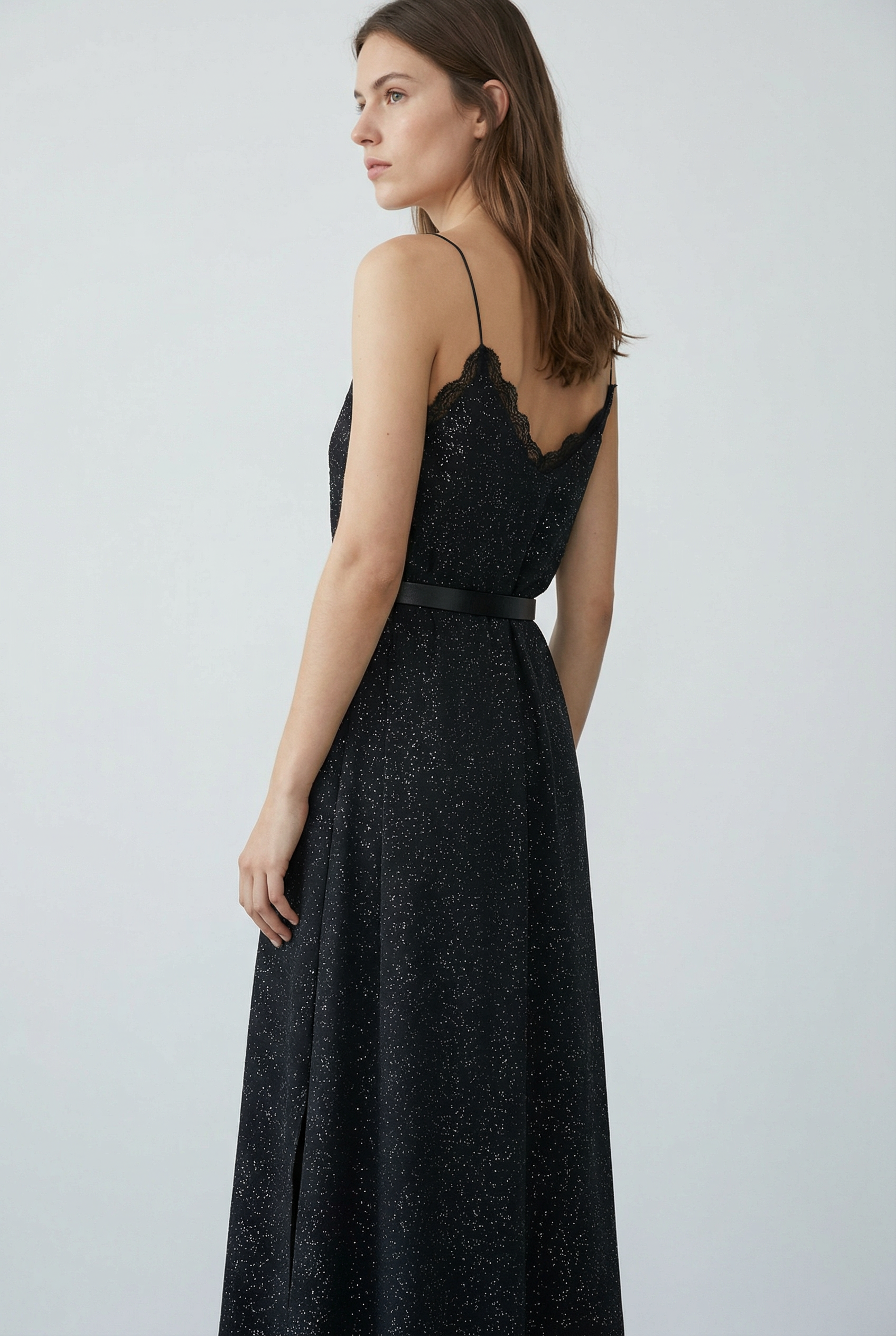 • Portez cette combinaison noire élégante pour soirée avec des sandales à talons pour allonger la silhouette.